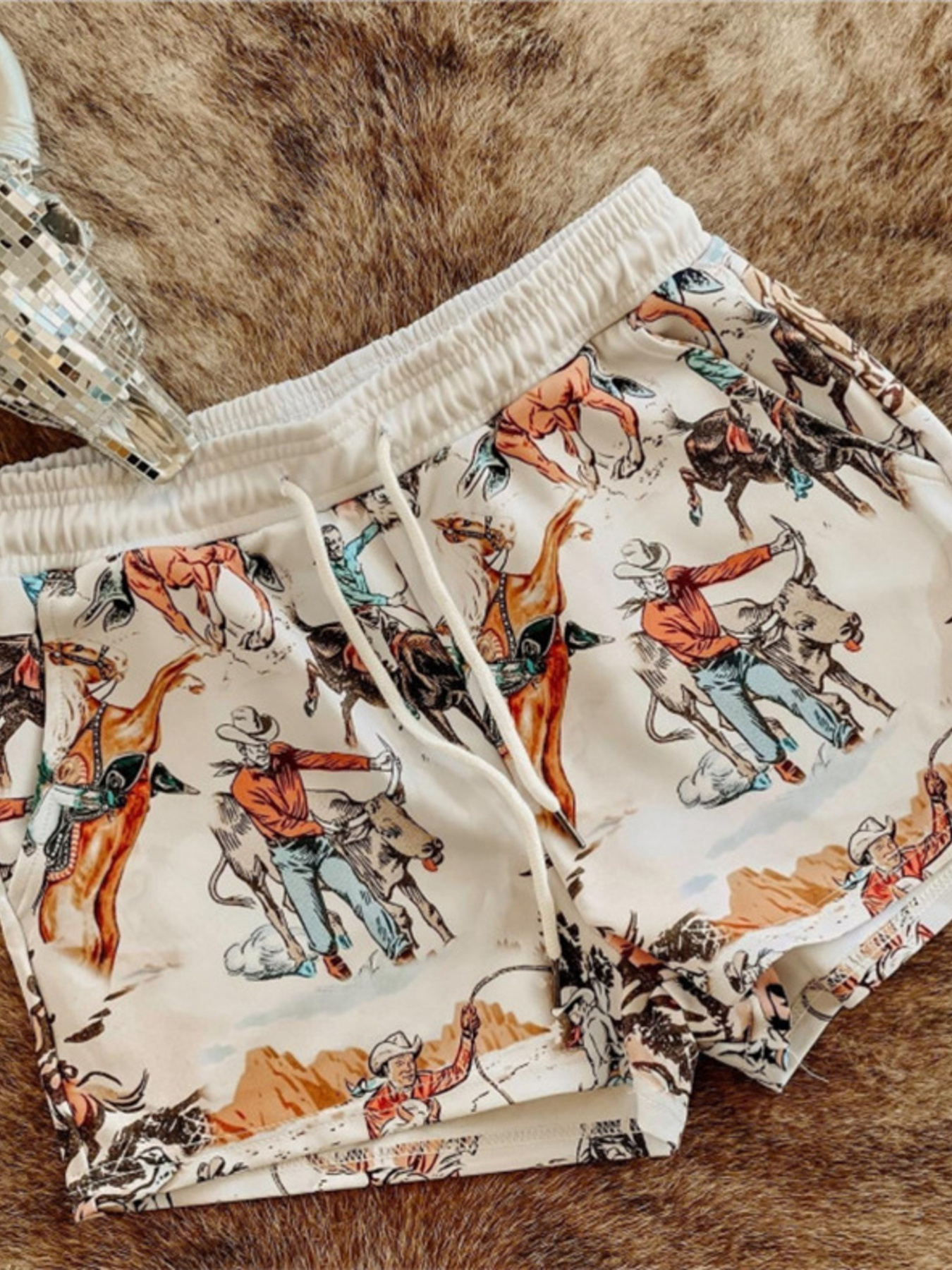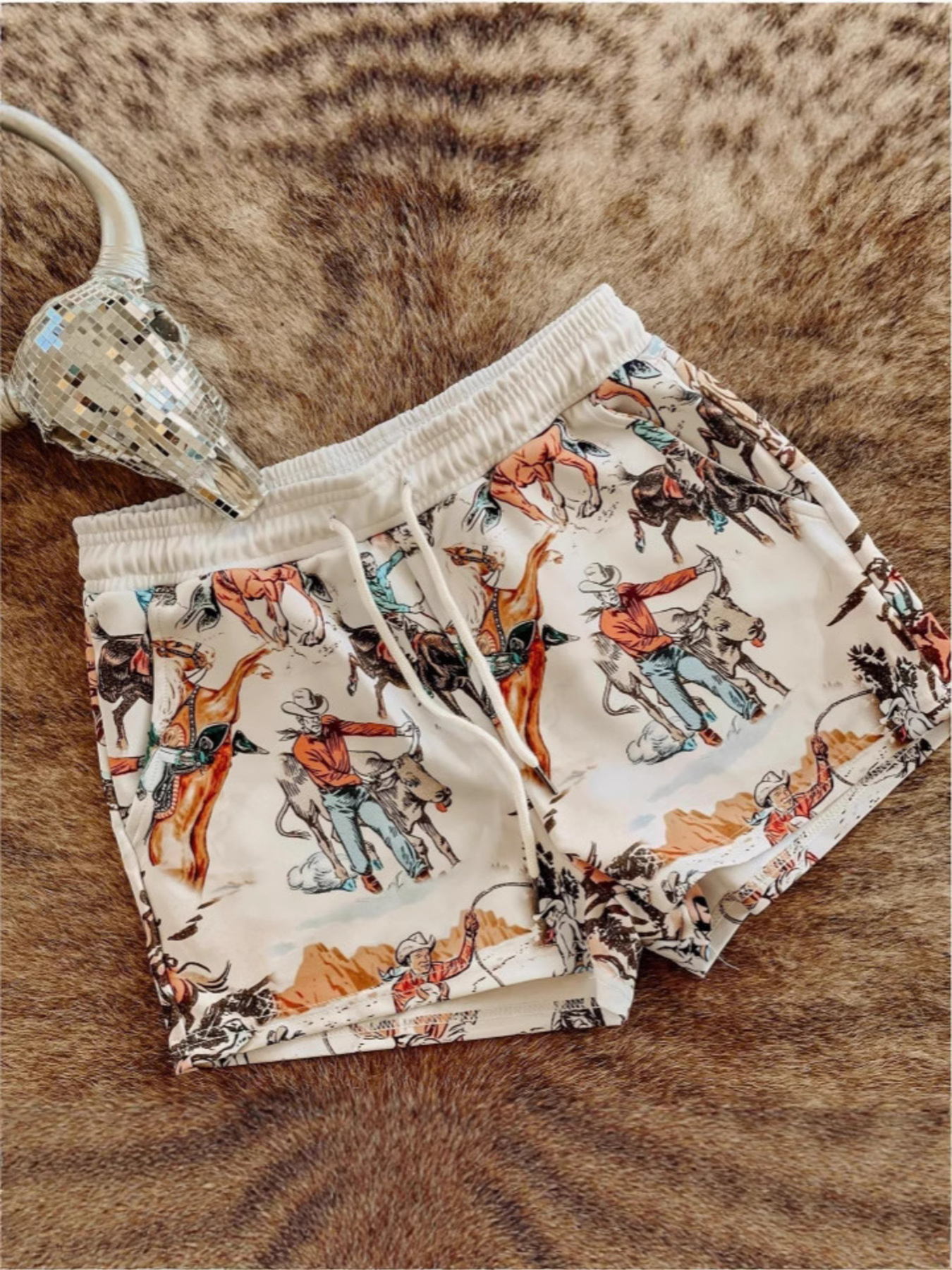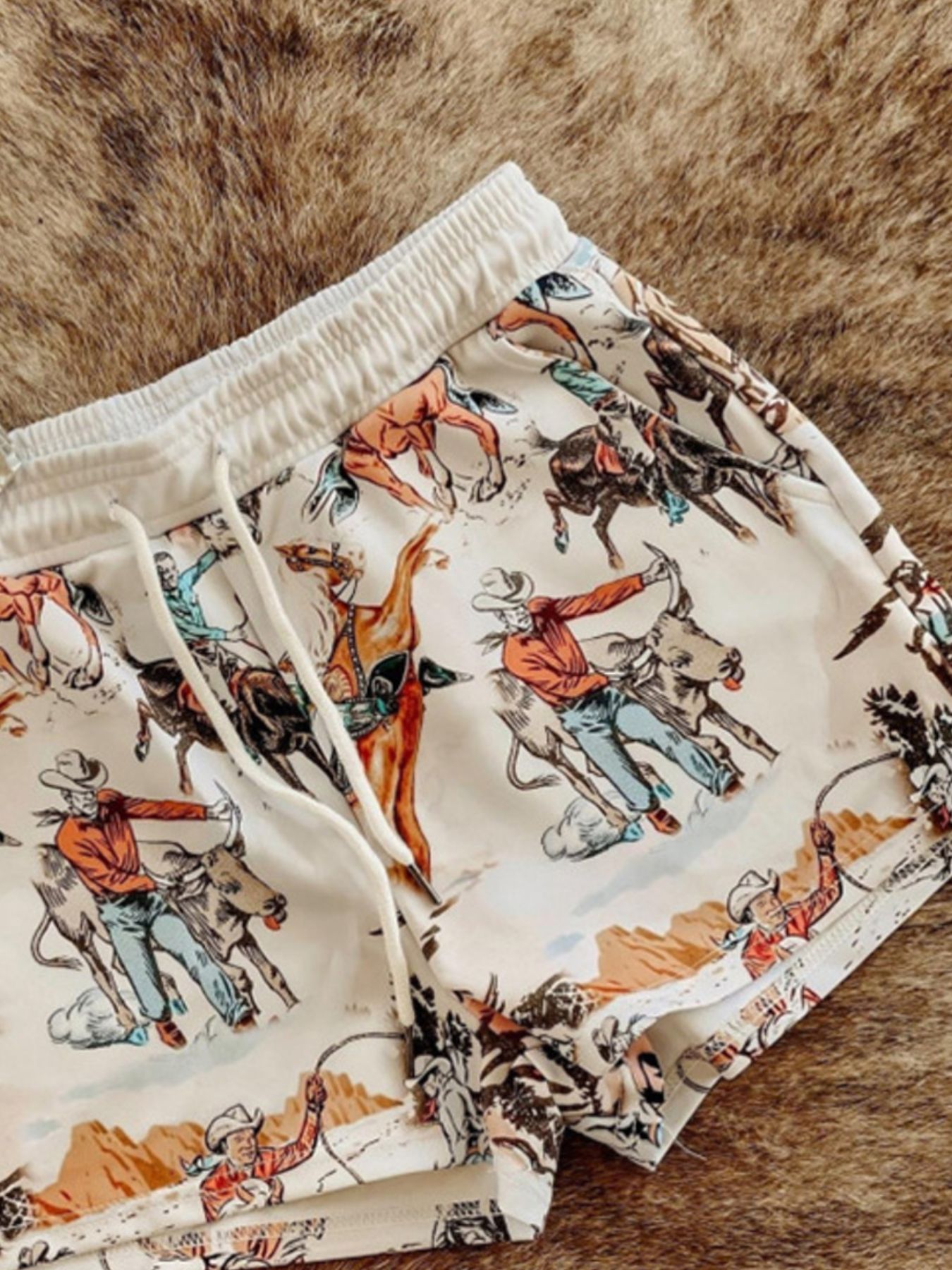 Wild West Rodeo Print Drawstring Shorts