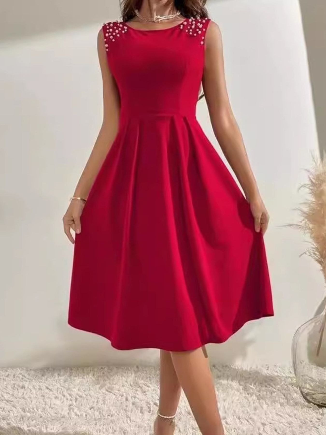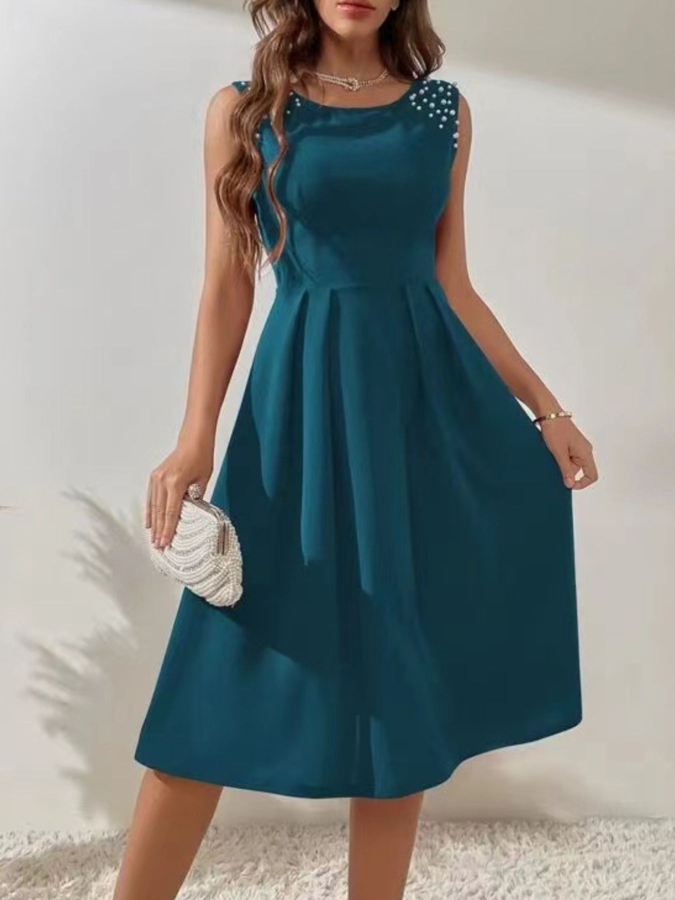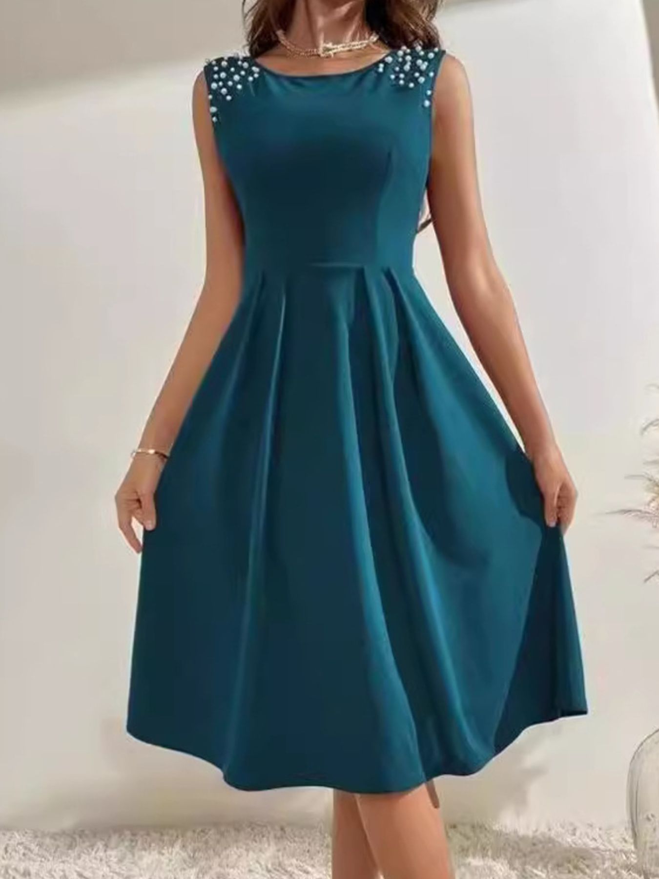 Pearl Detail Sleeveless Midi Dress