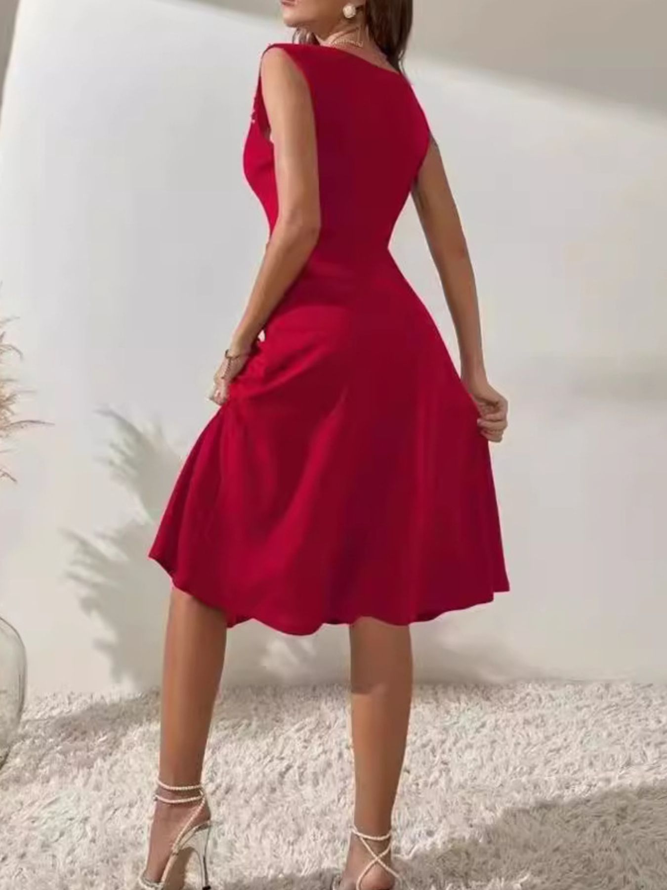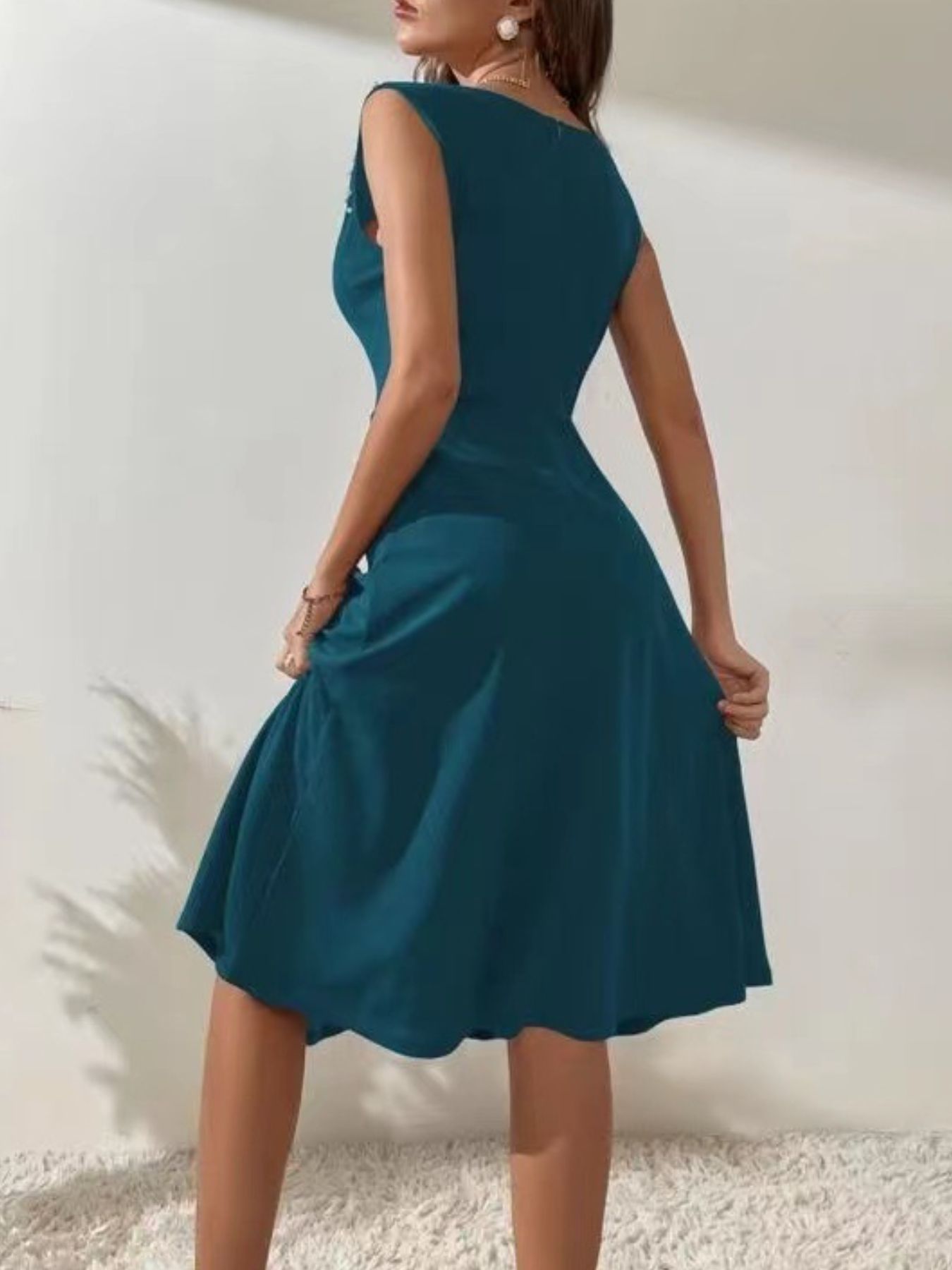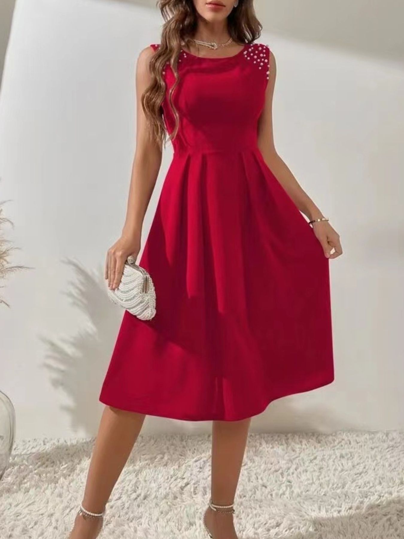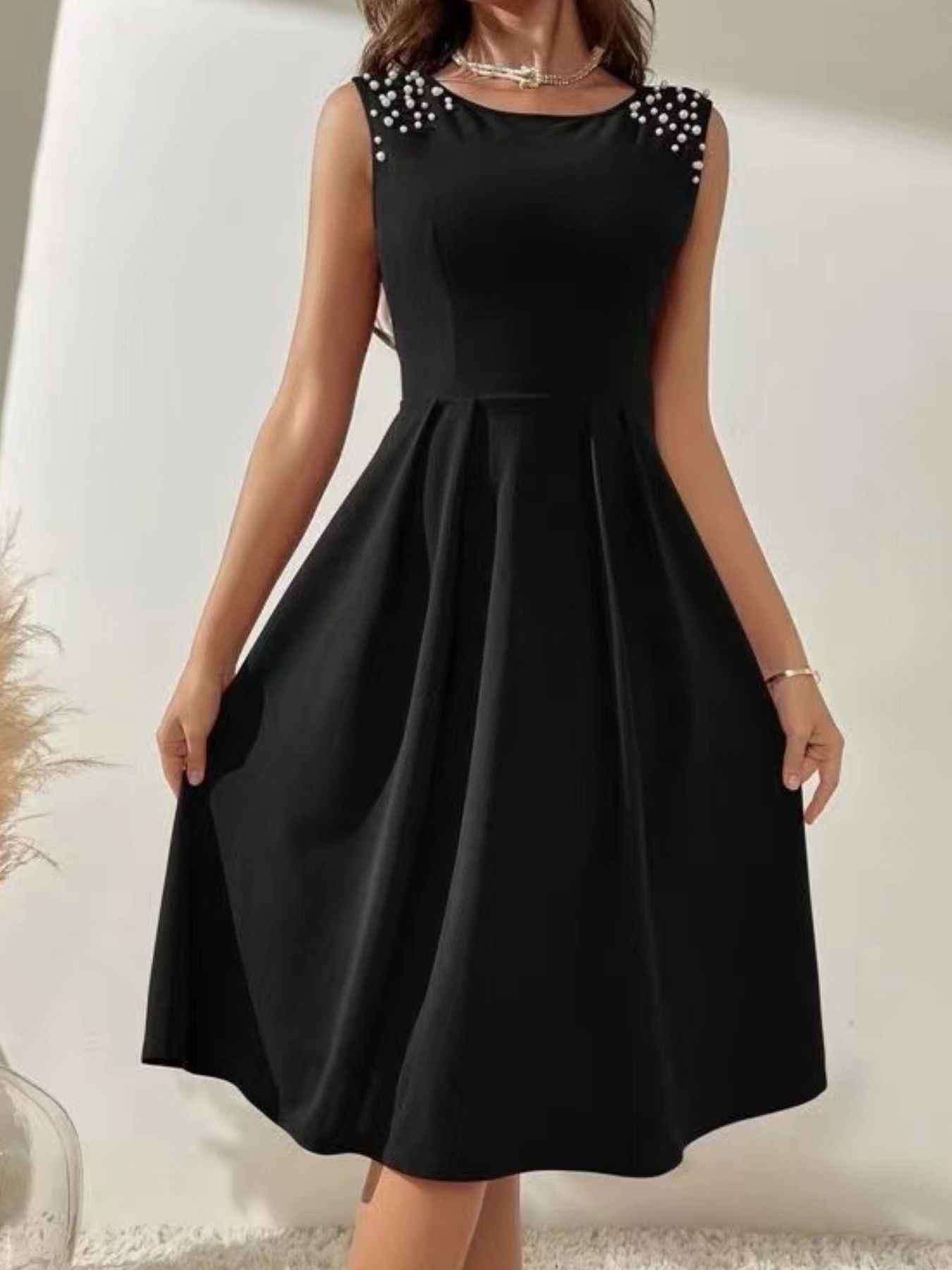 Pearl Detail Sleeveless Midi Dress