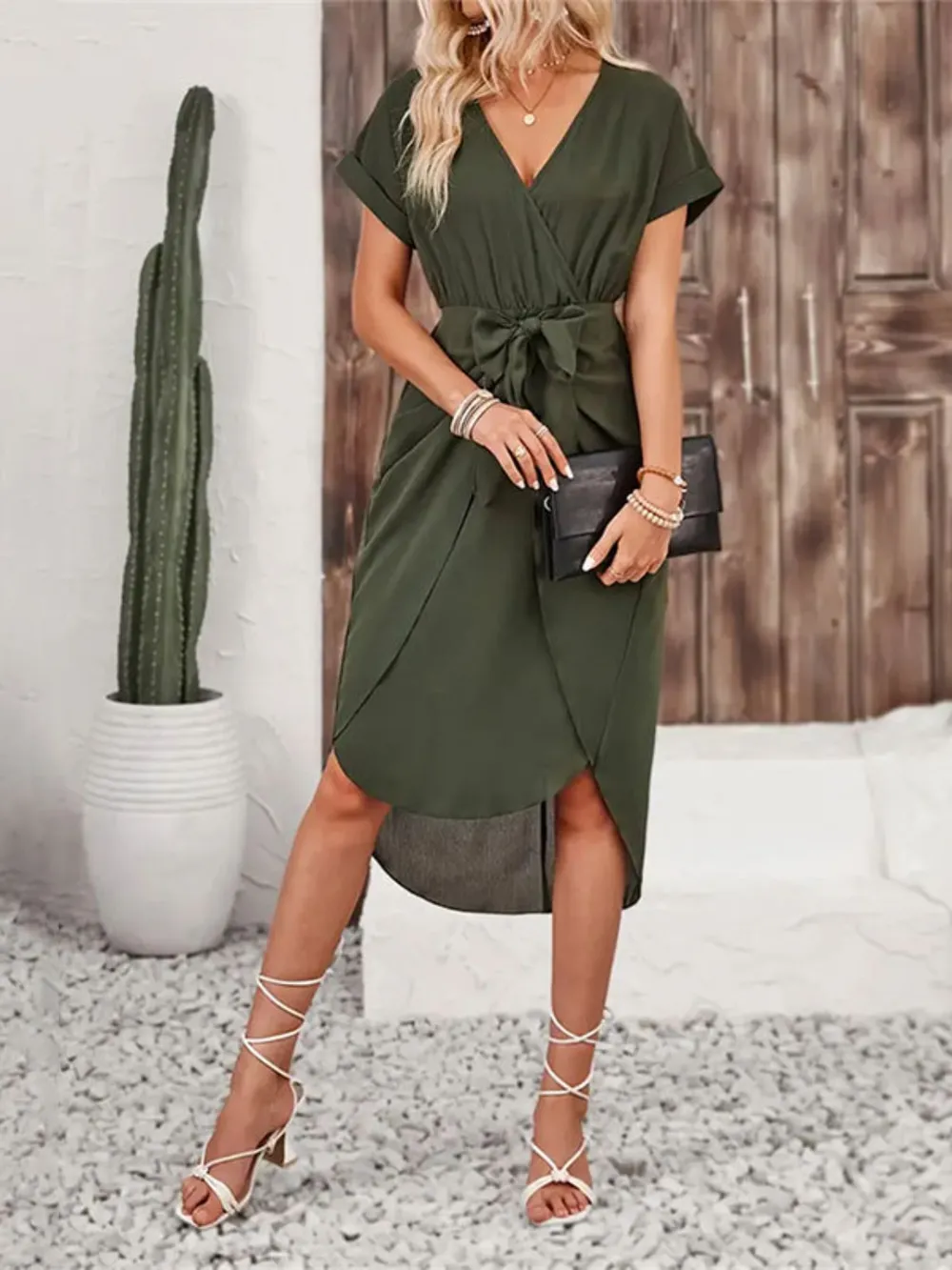 Tied Surplice Short Sleeve Dress