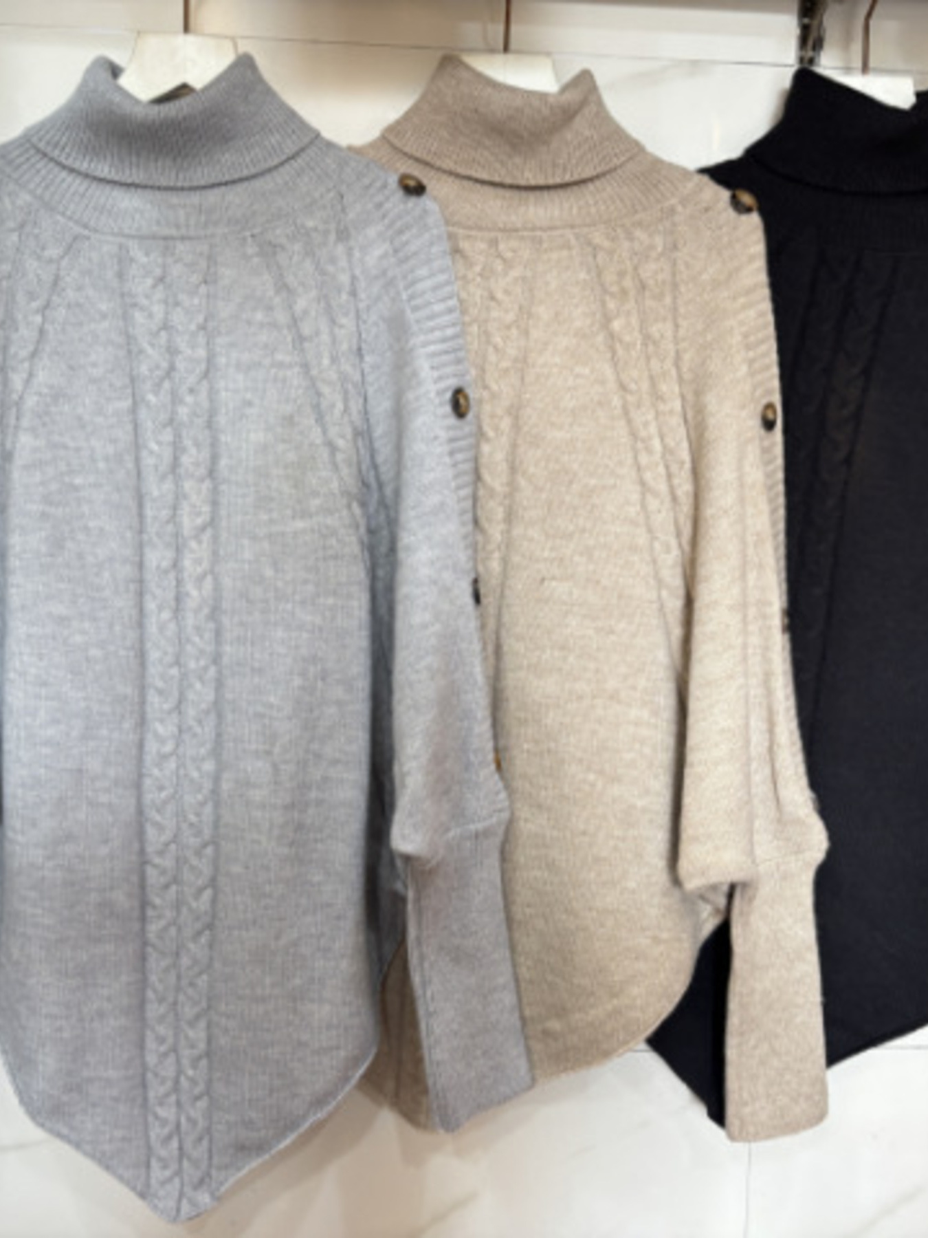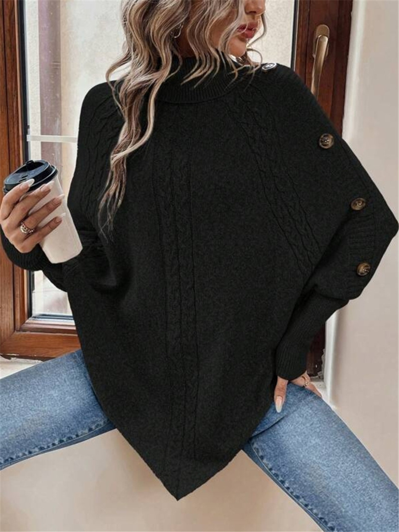 Cable Knit Turtleneck Cape Sweater