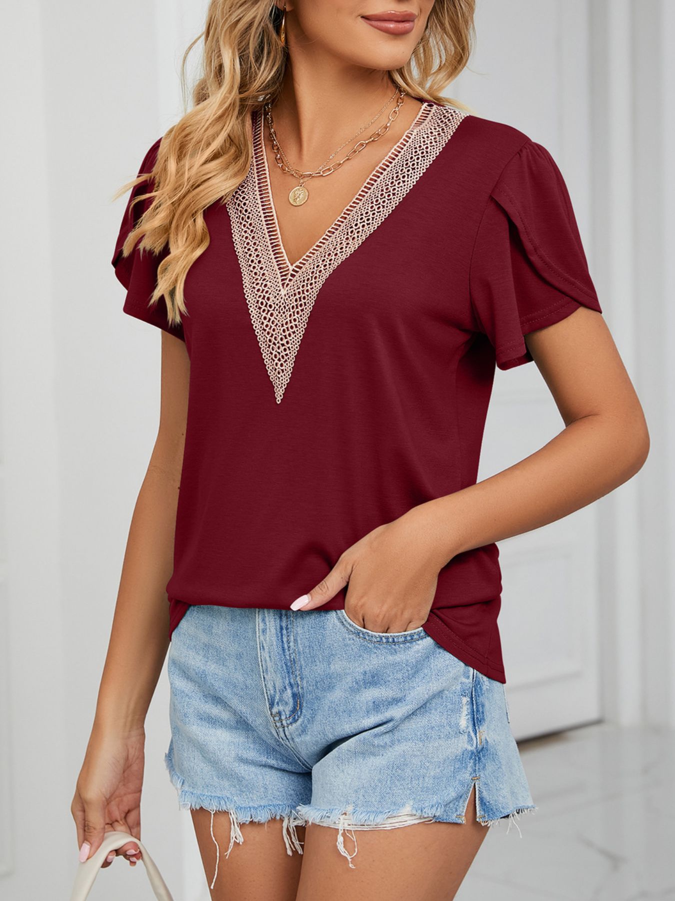 V-Neck Petal Sleeve Top