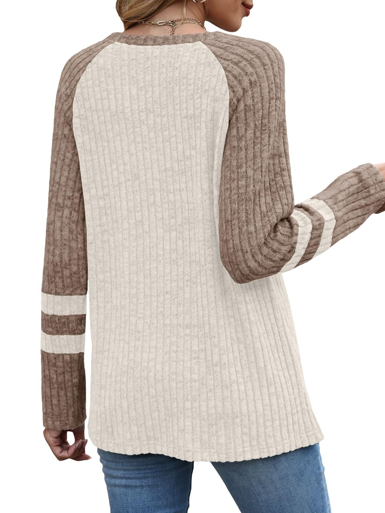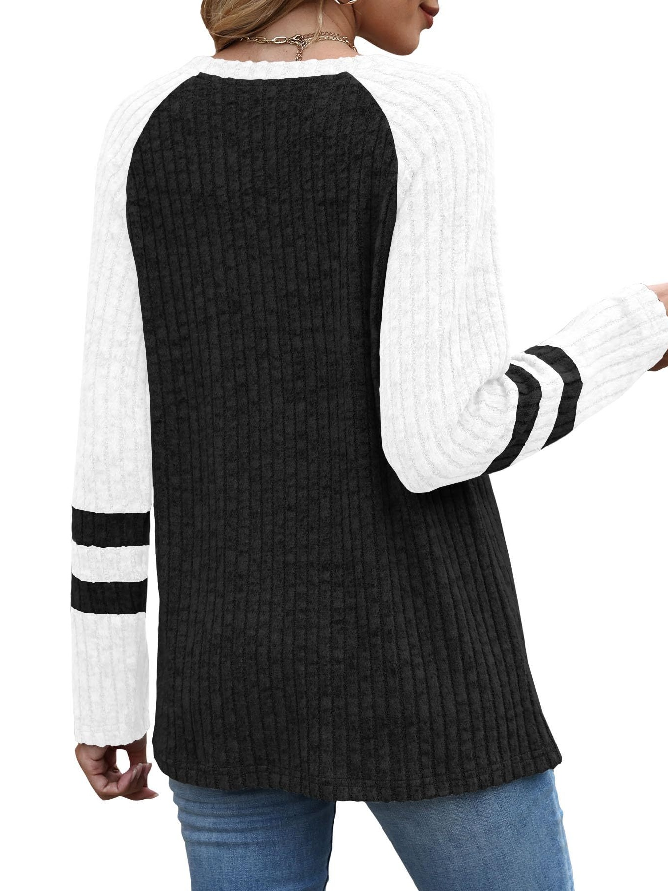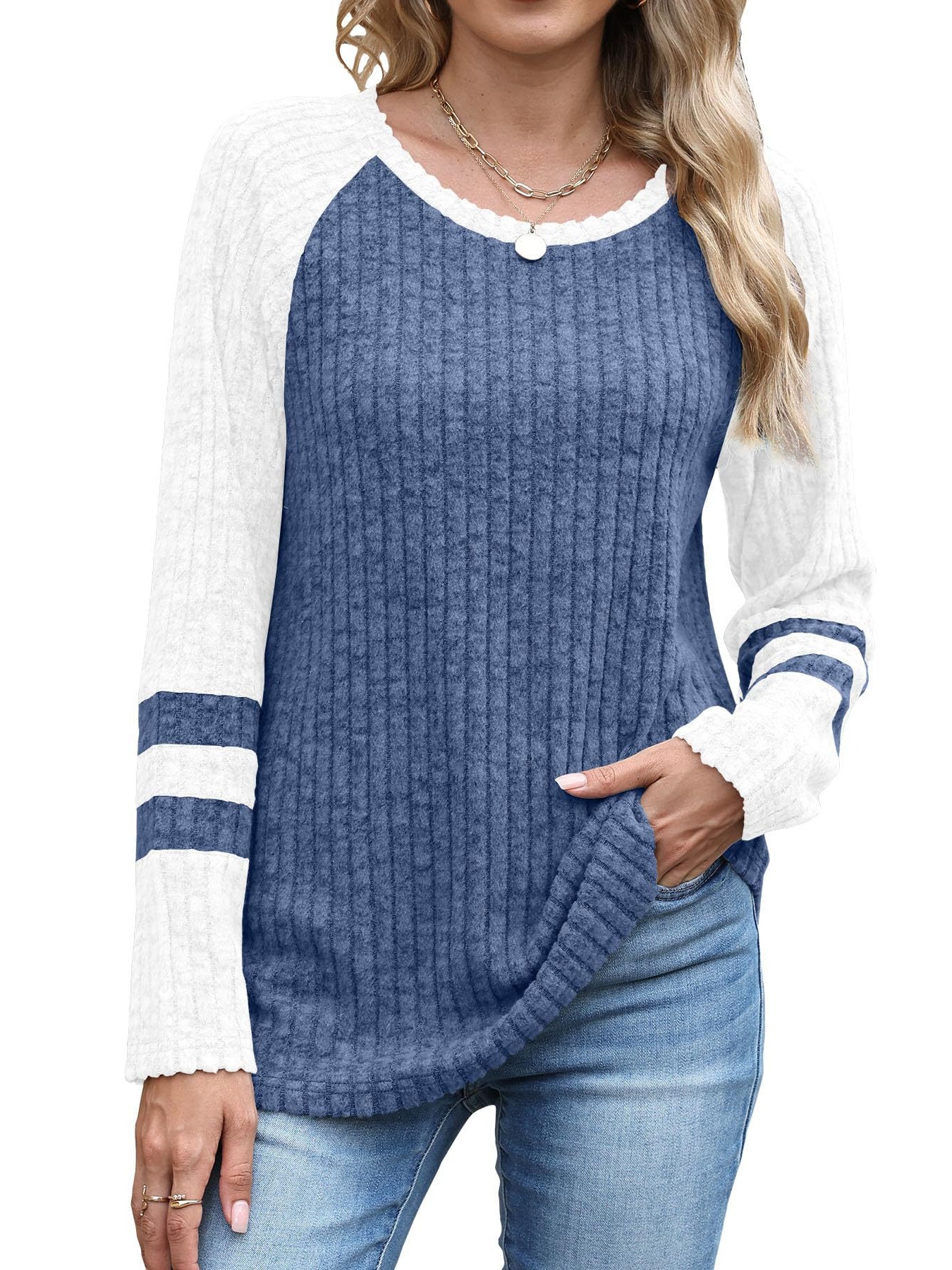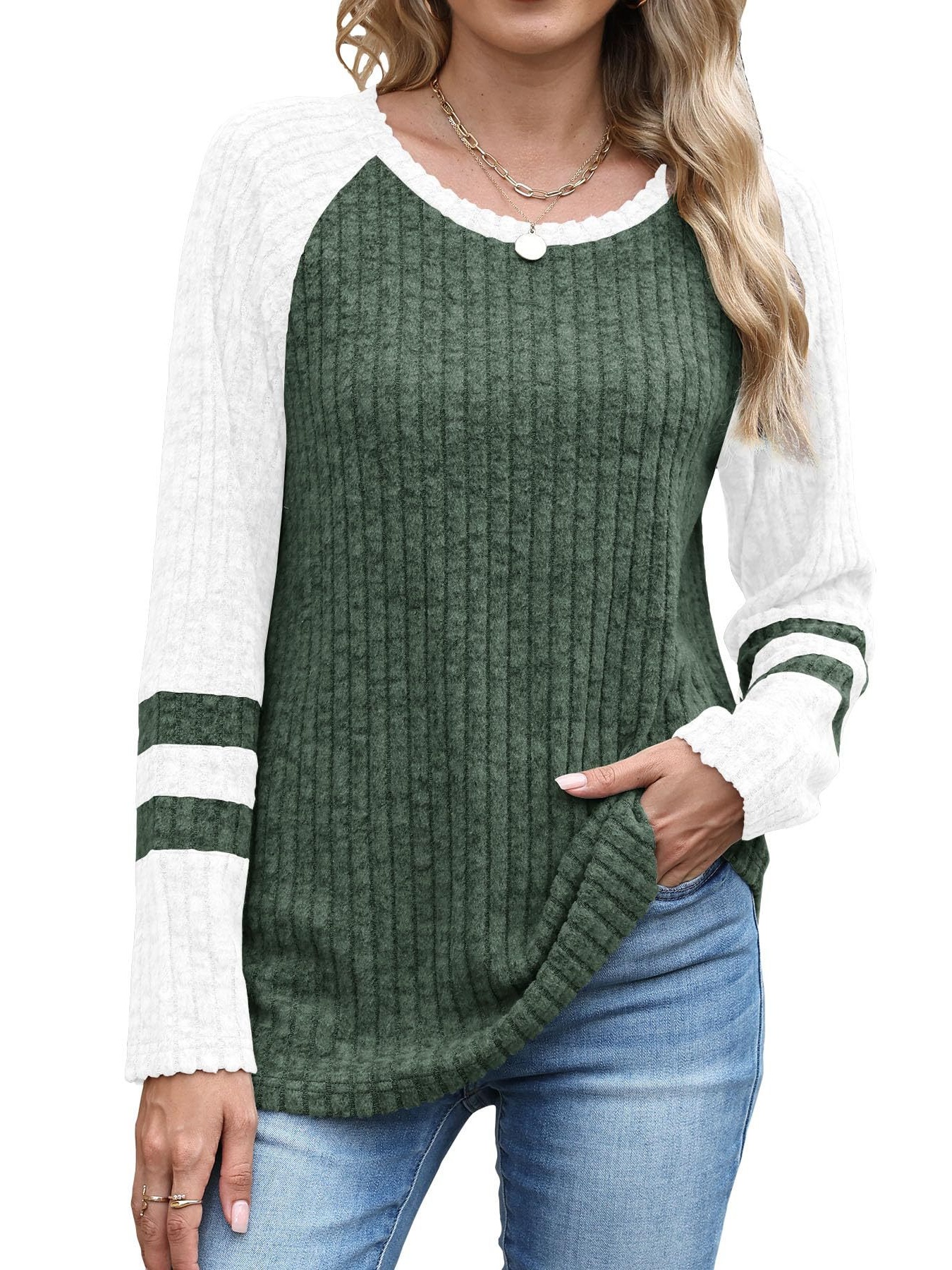 Ribbed Round Neck Raglan Sleeve Top