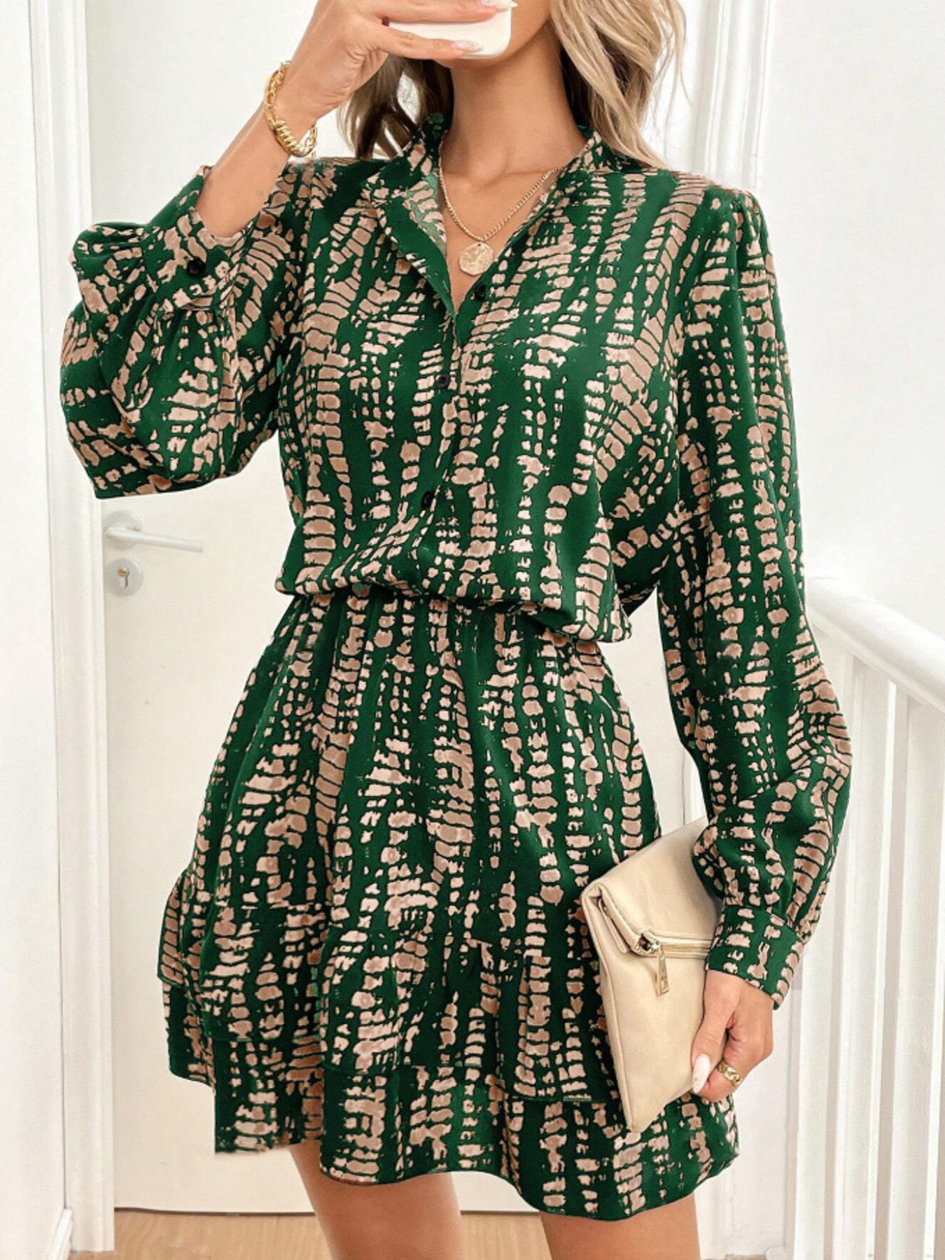 Printed Long Sleeve Mini Dress