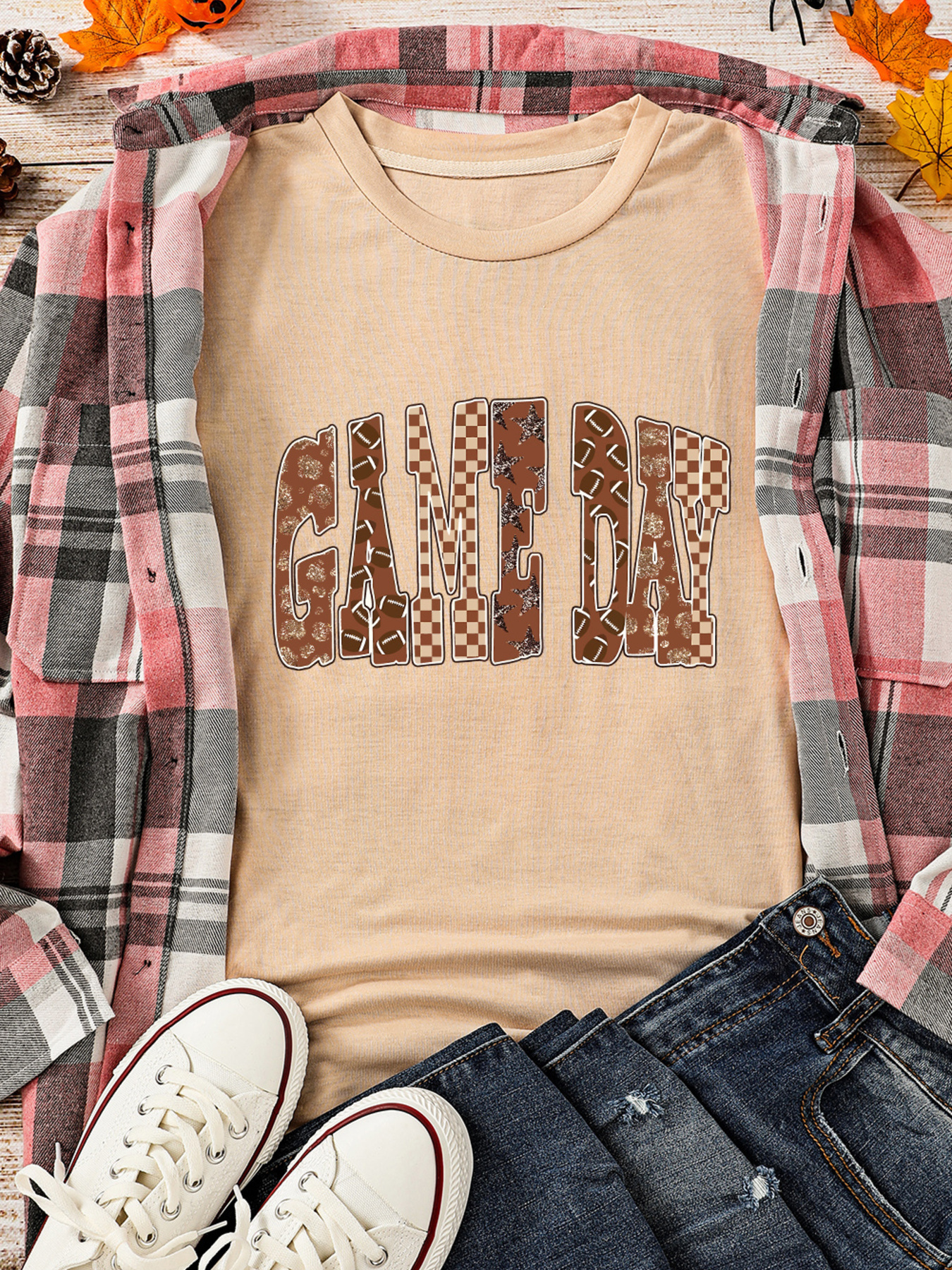 Full Size Game Day Checkered Letter Graphic T Shirt Plus Size
