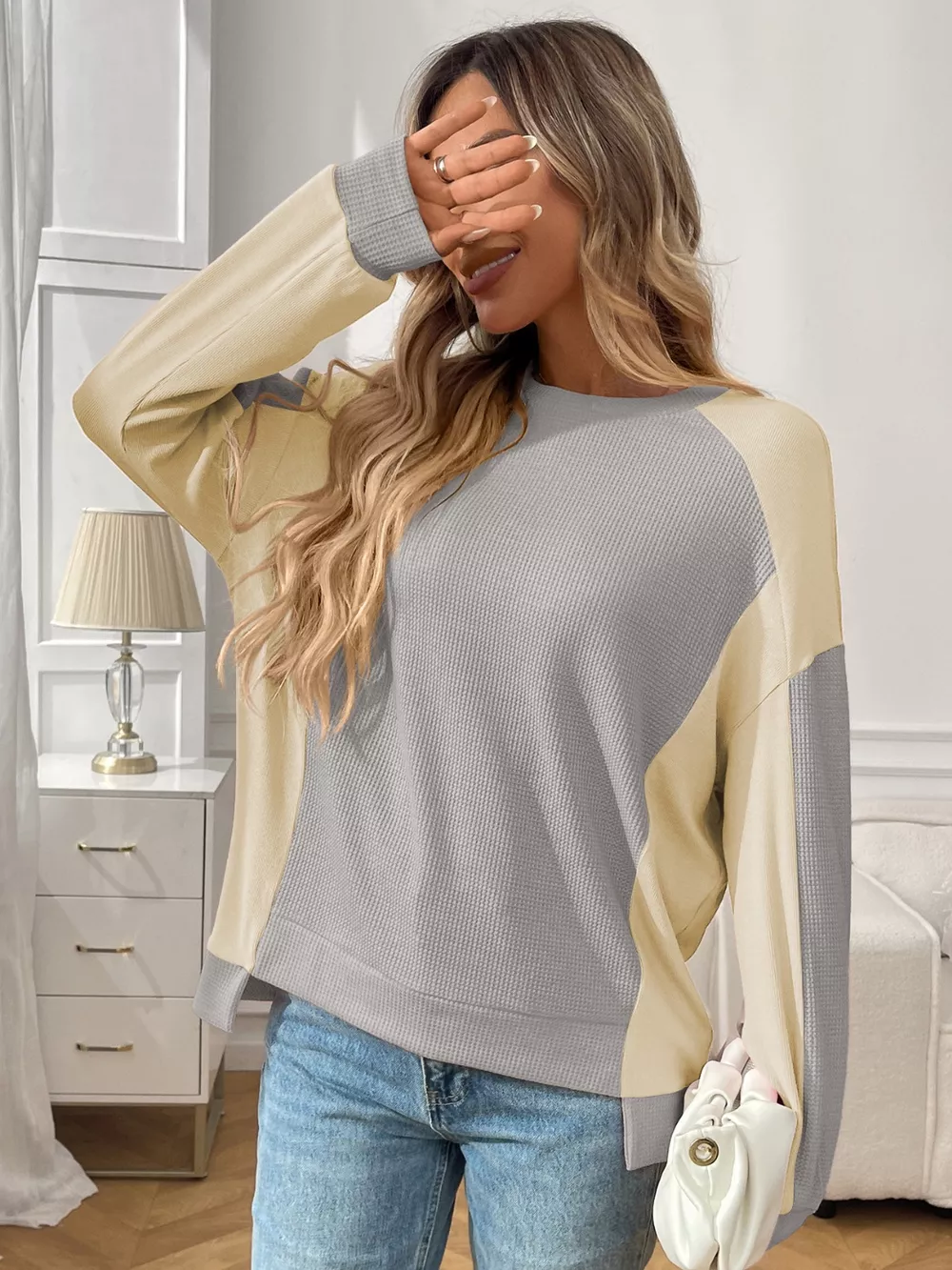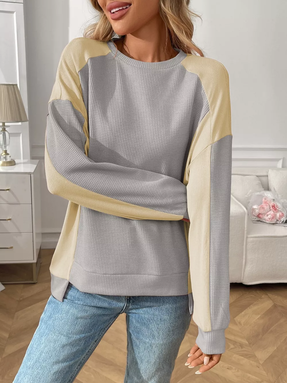 Color Block Waffle Knit Long Sleeve T-Shirt
