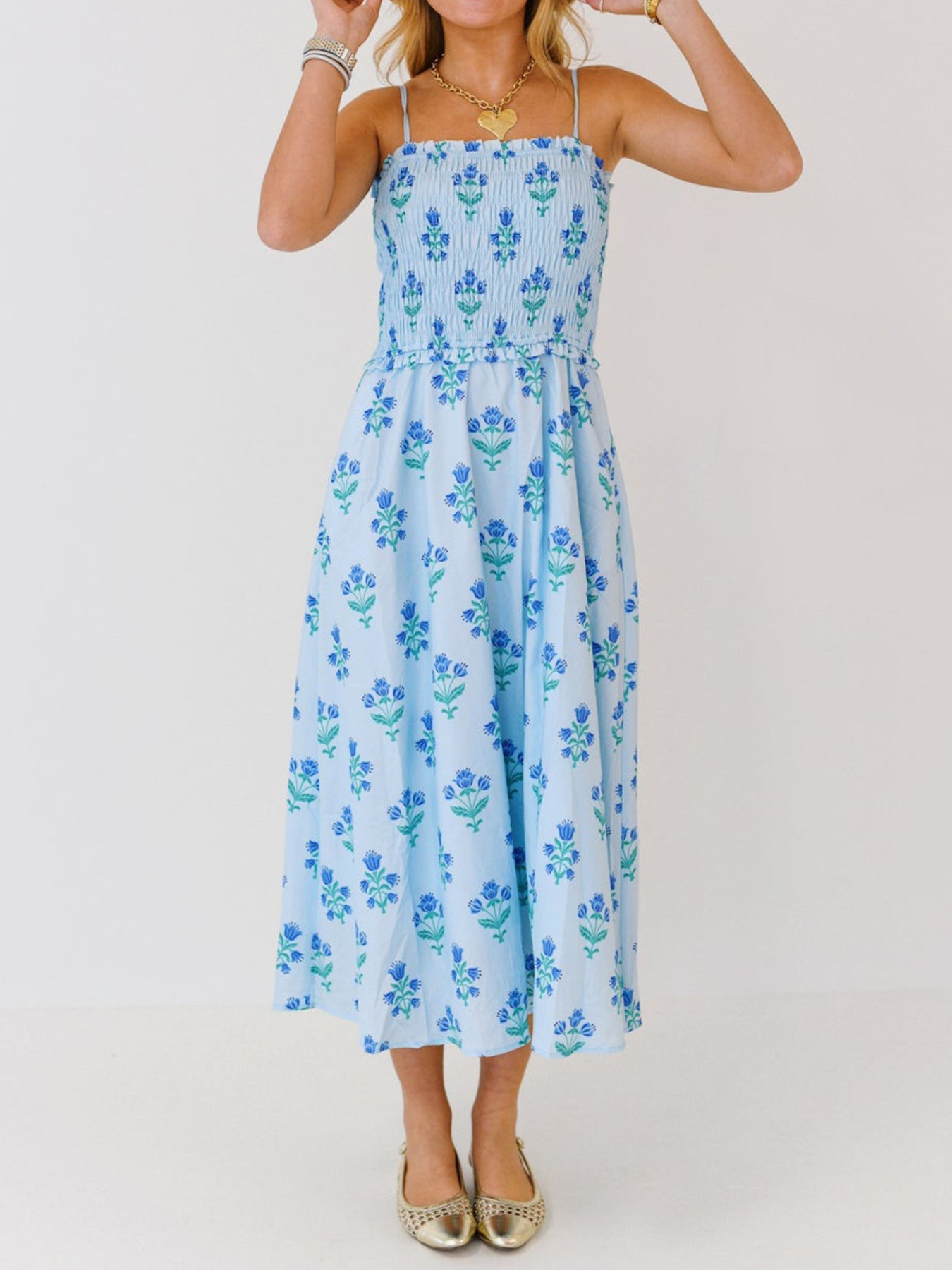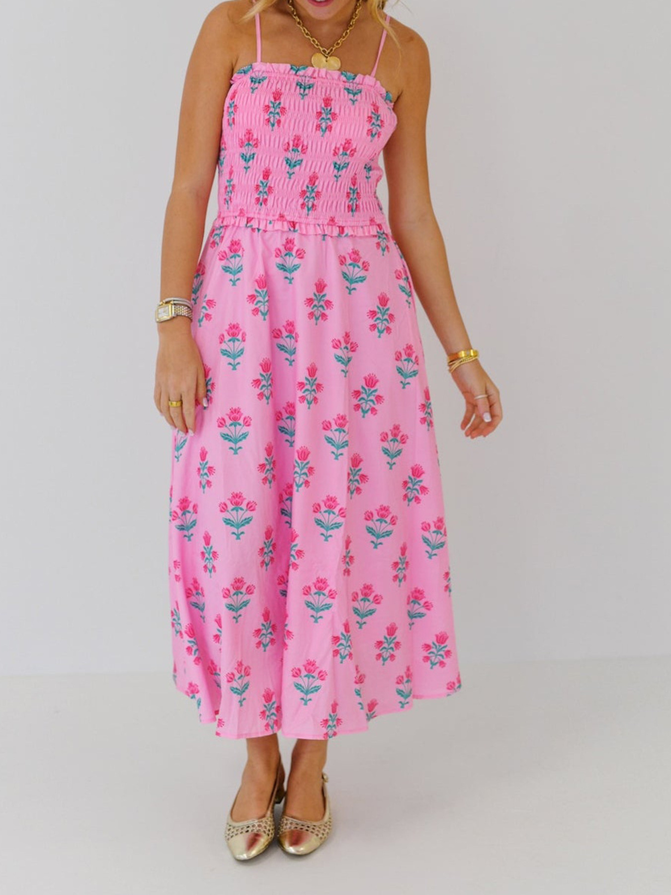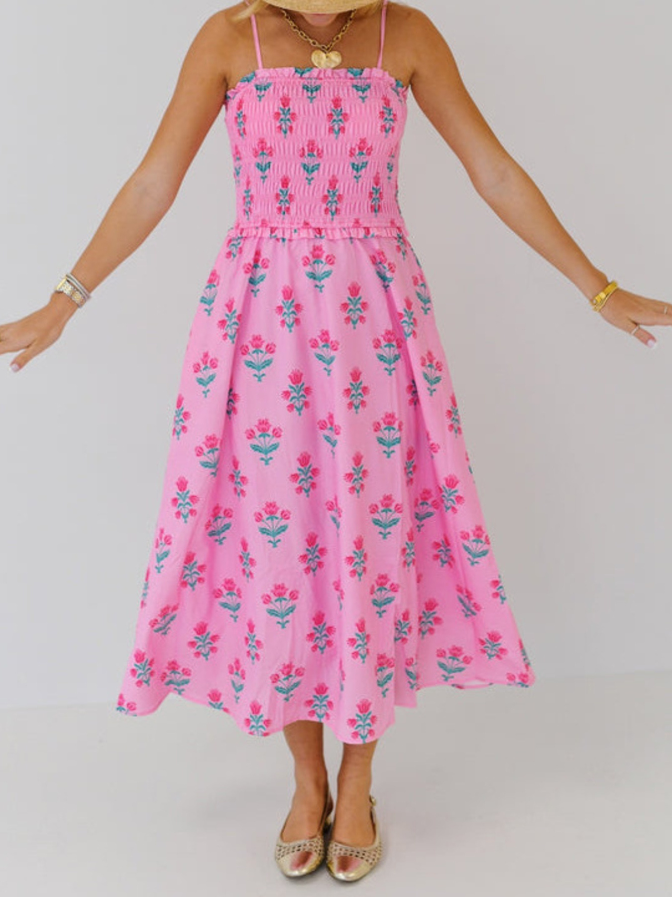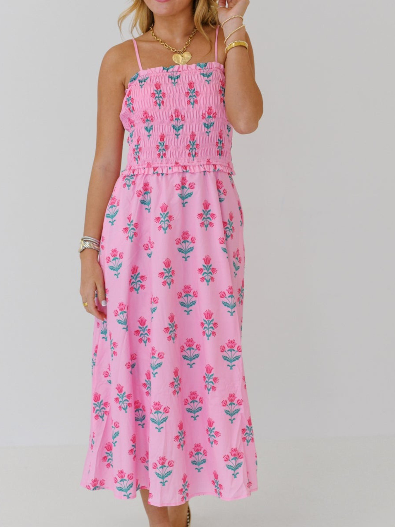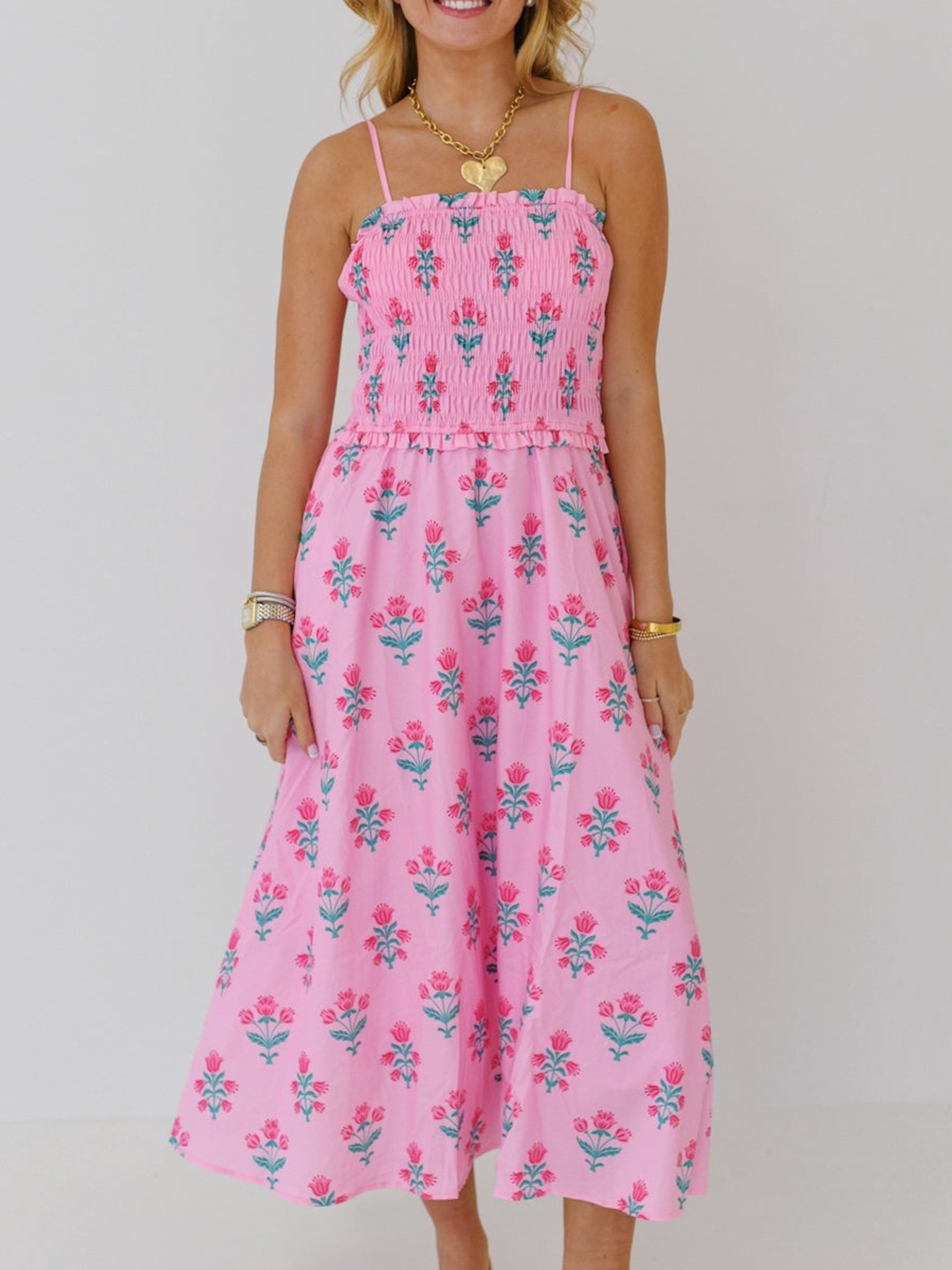Floral Smocked Adjustable Strap Midi Cami Dress