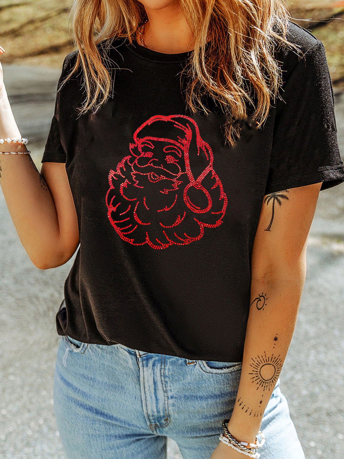 Rhinestone Santa Claus Christmas Graphic T Shirt