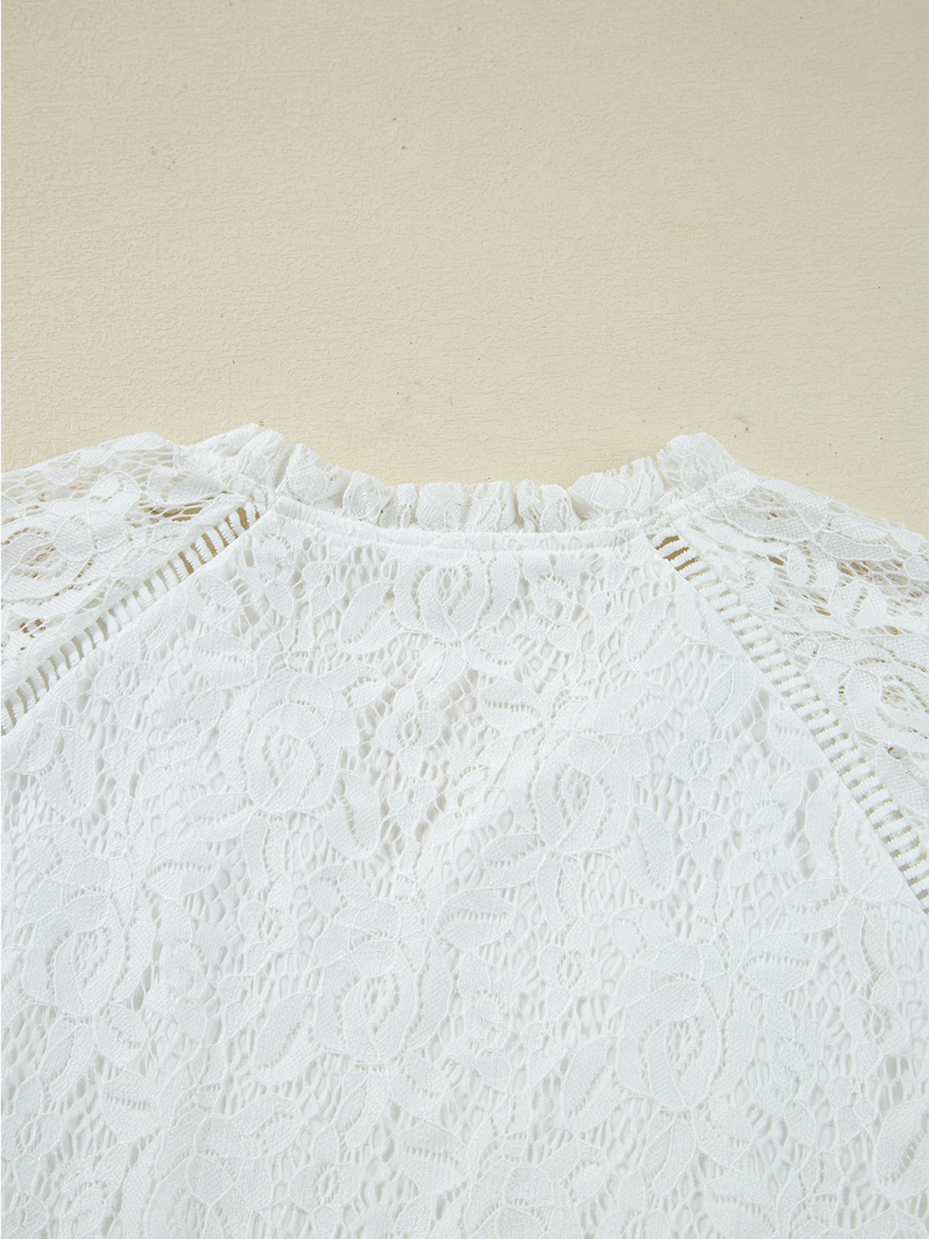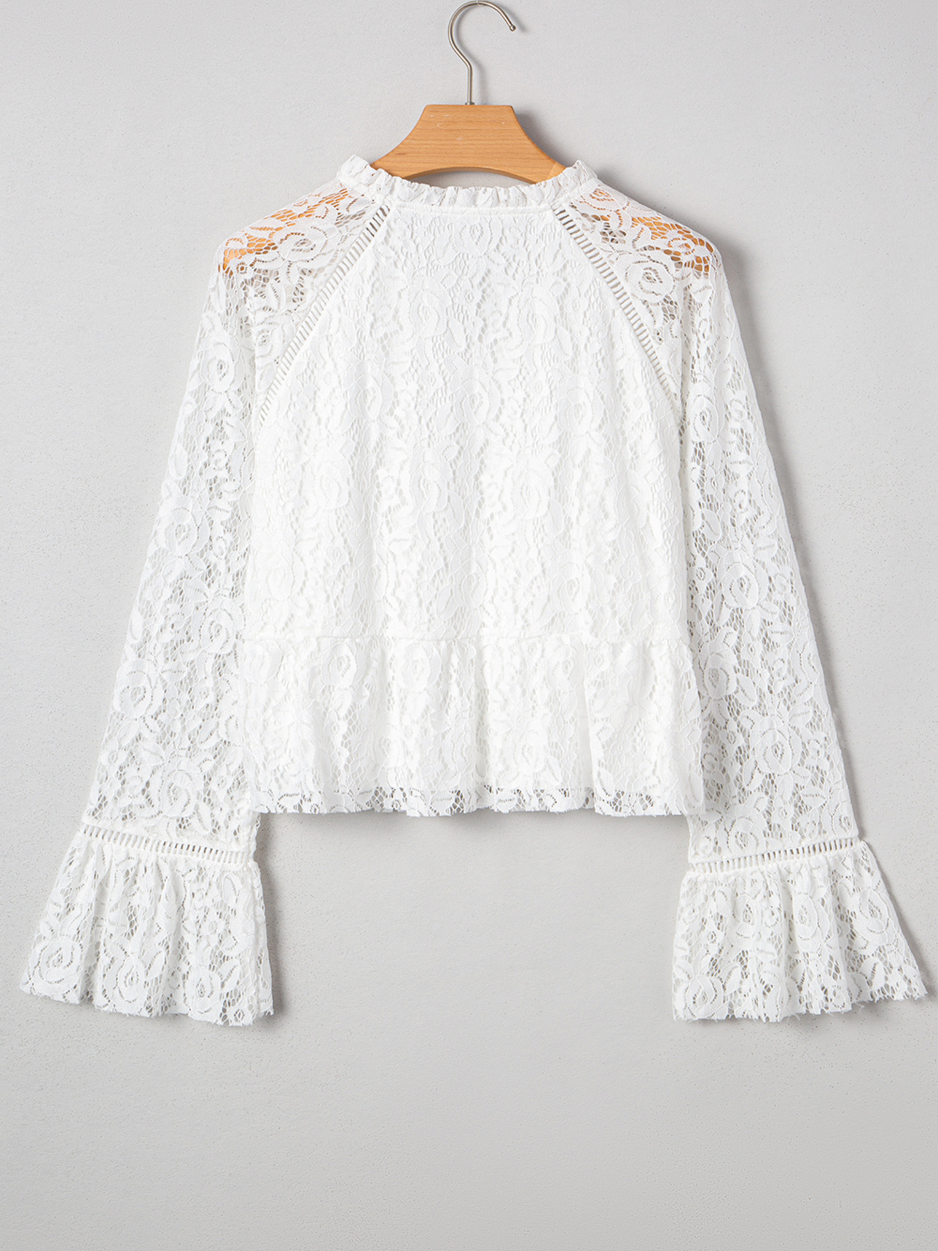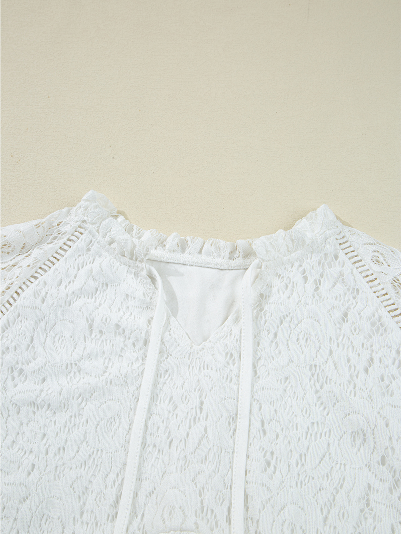 Tie Neck Lace Ruffle Detail Long Sleeve Blouse