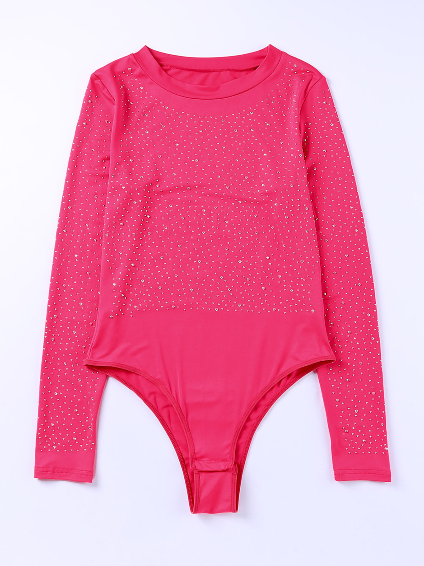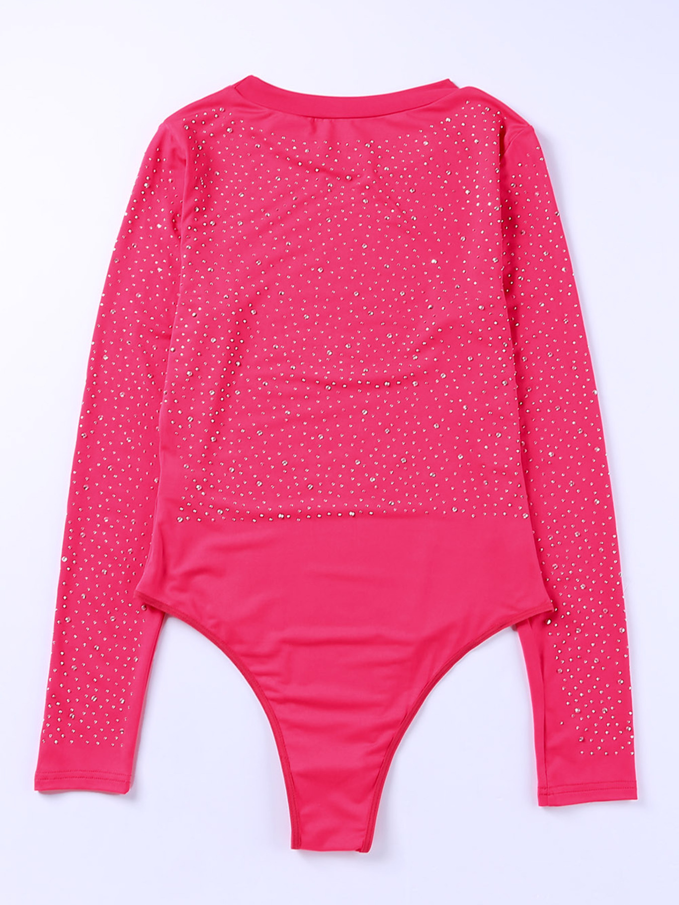 Rhinestone Round Neck Long Sleeve Bodysuit