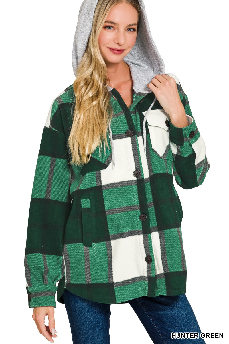 Zenana Plaid Drawstring Hooded Fleece Shacket