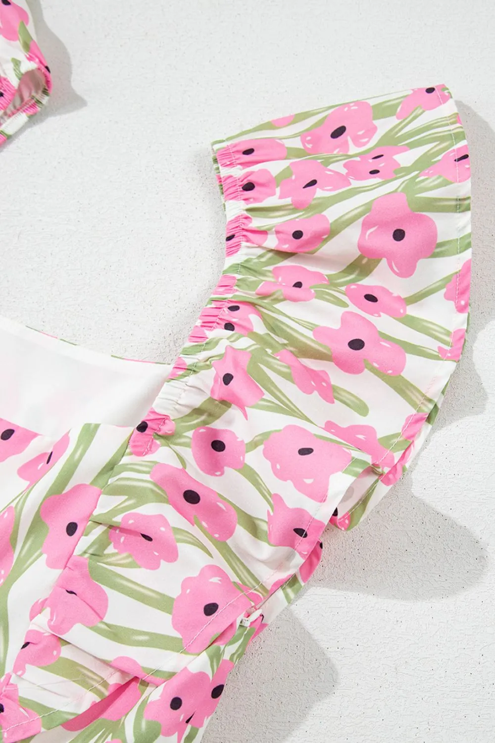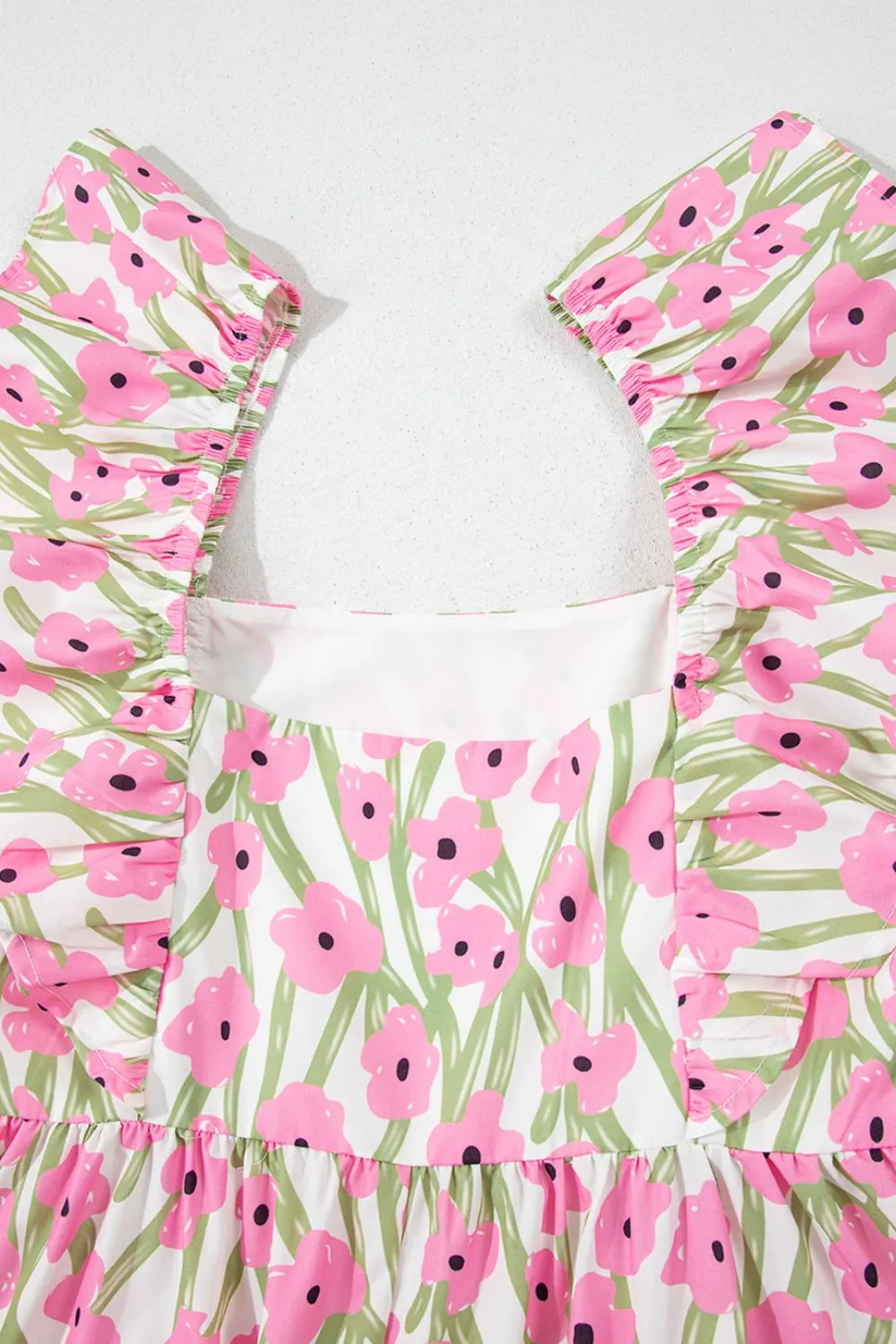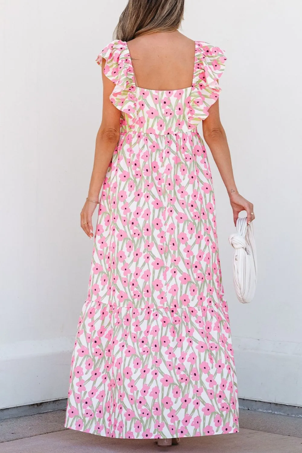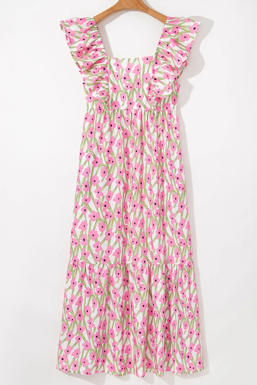 Floral Print Square Neck Ruffled Cap Sleeve Maxi Dress
