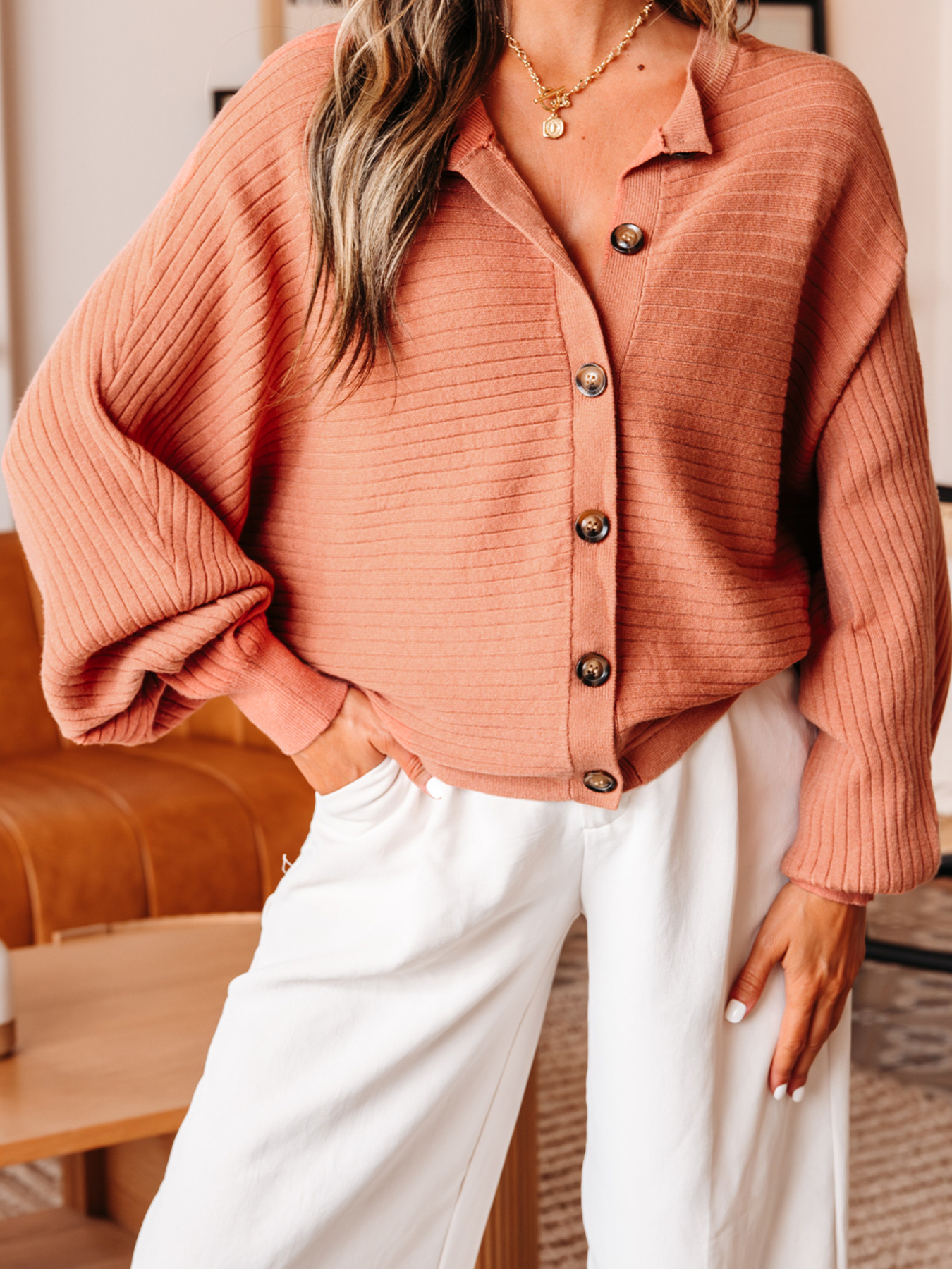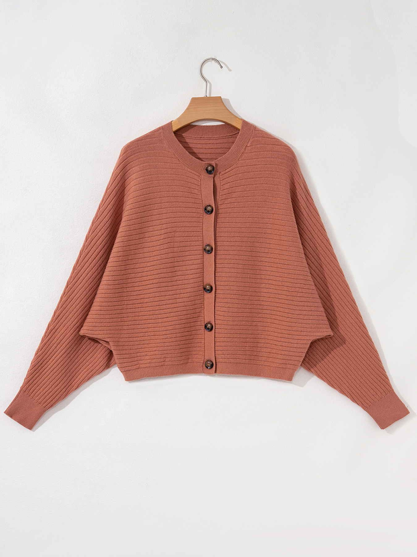 Rib Knit Button Front Dolman Sleeve Sweater Cardigan