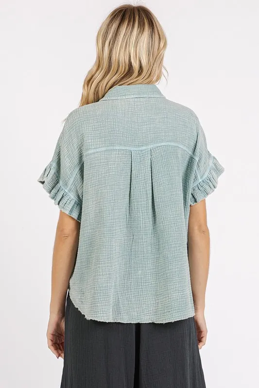 Mittoshop Mineral Washed Button Down Flounce Sleeve Shirt