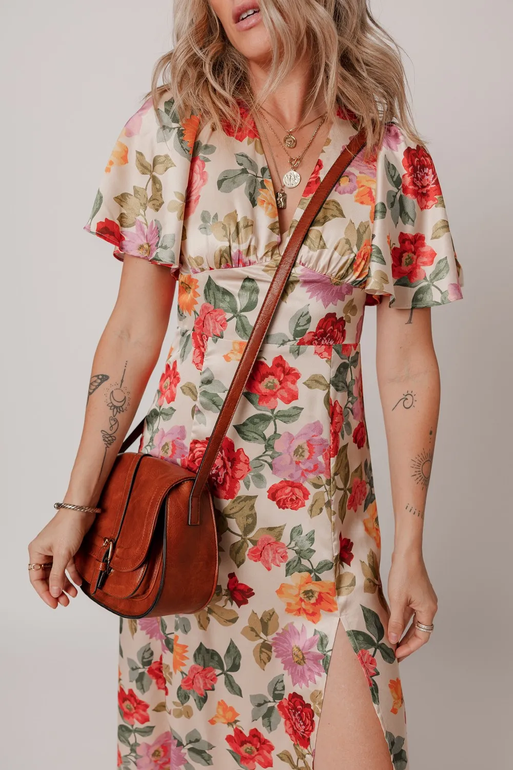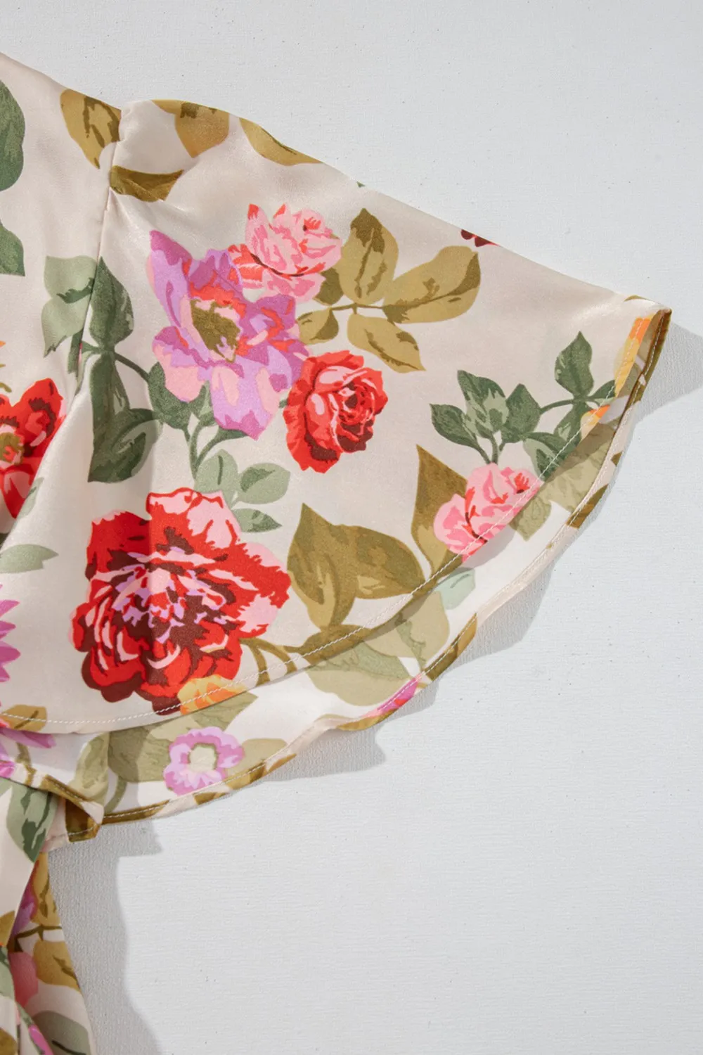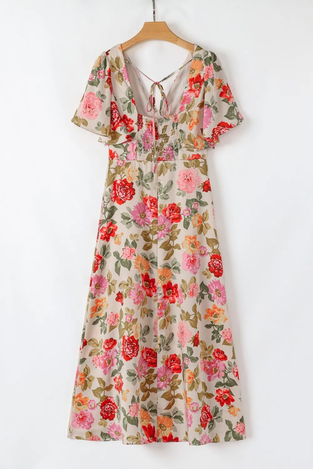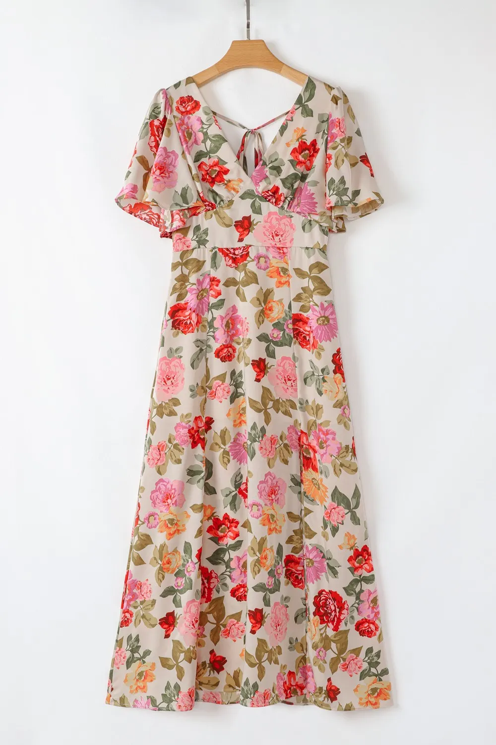 Floral Short Sleeve Tie Back Slit Dress