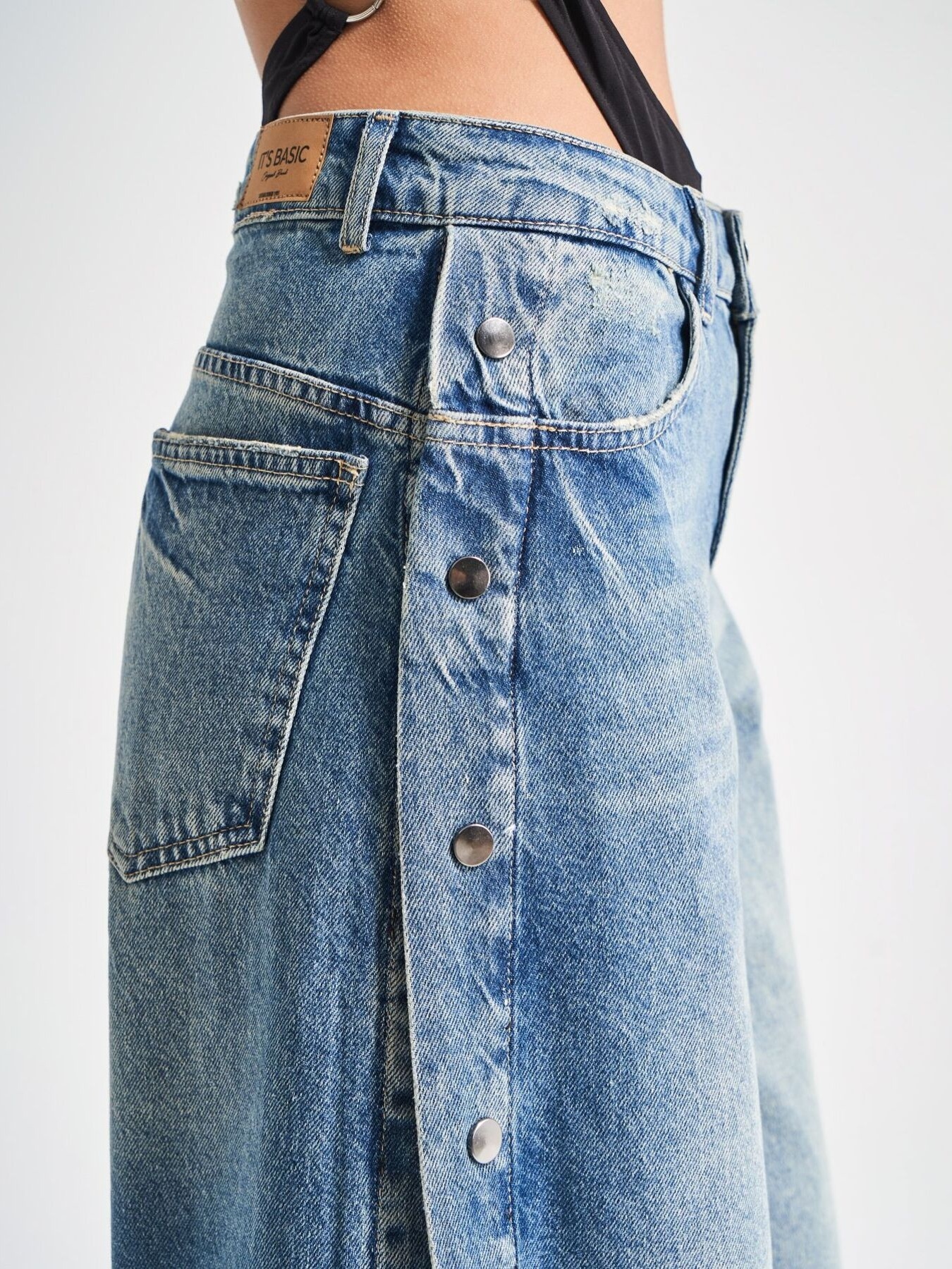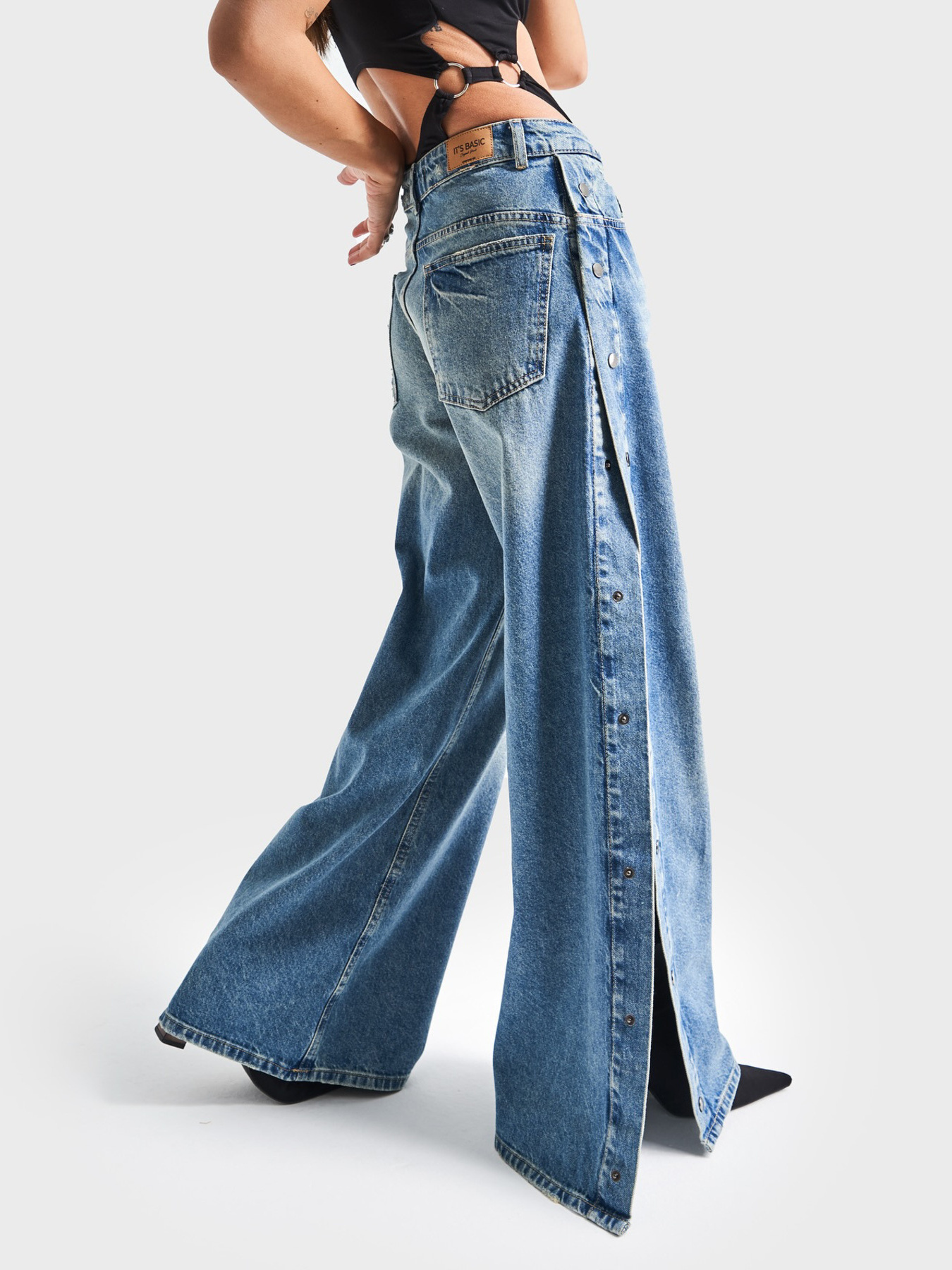 Wide Leg Side Snap Jeans