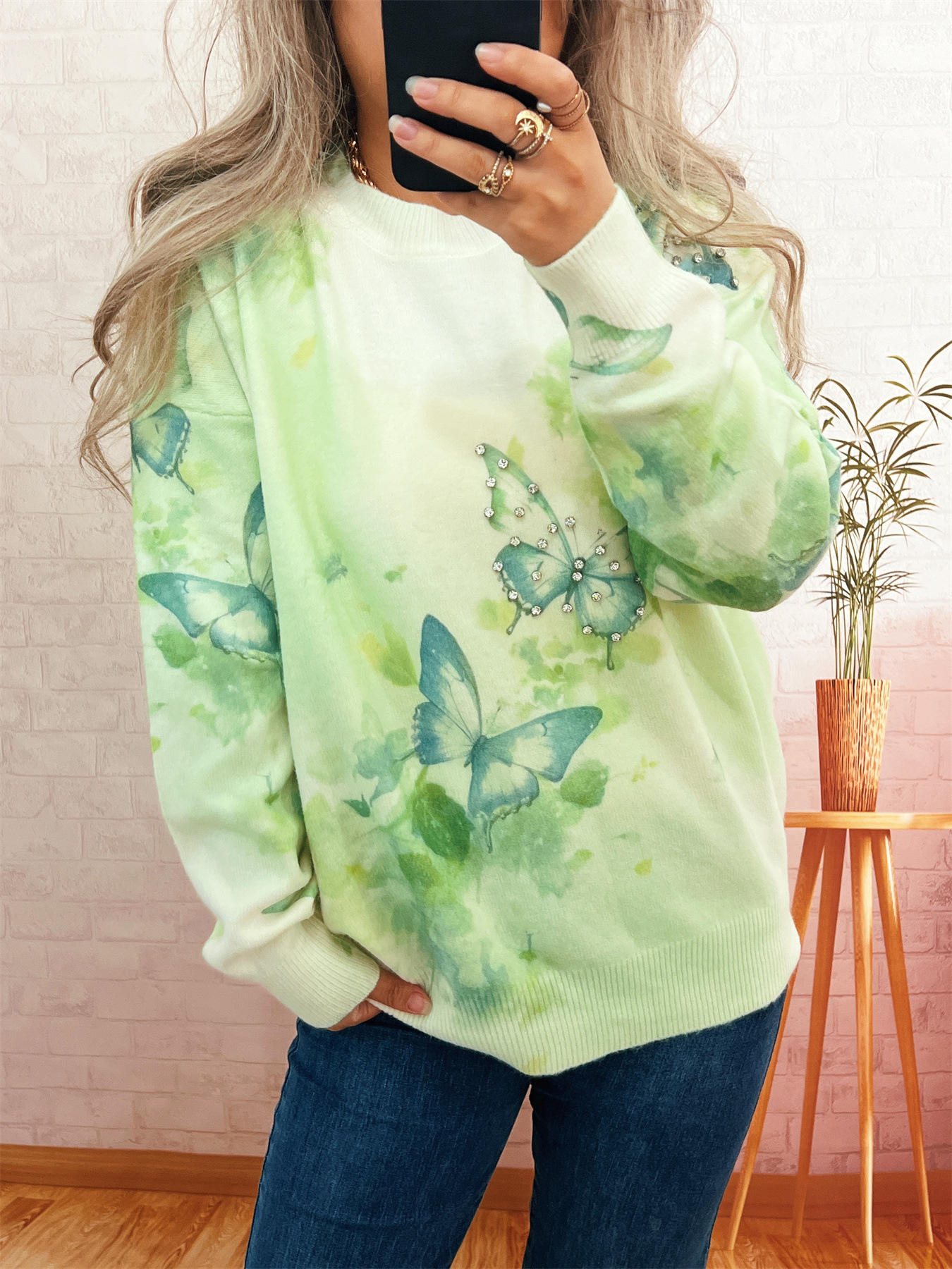 Butterfly Round Neck Lightweight Sweater