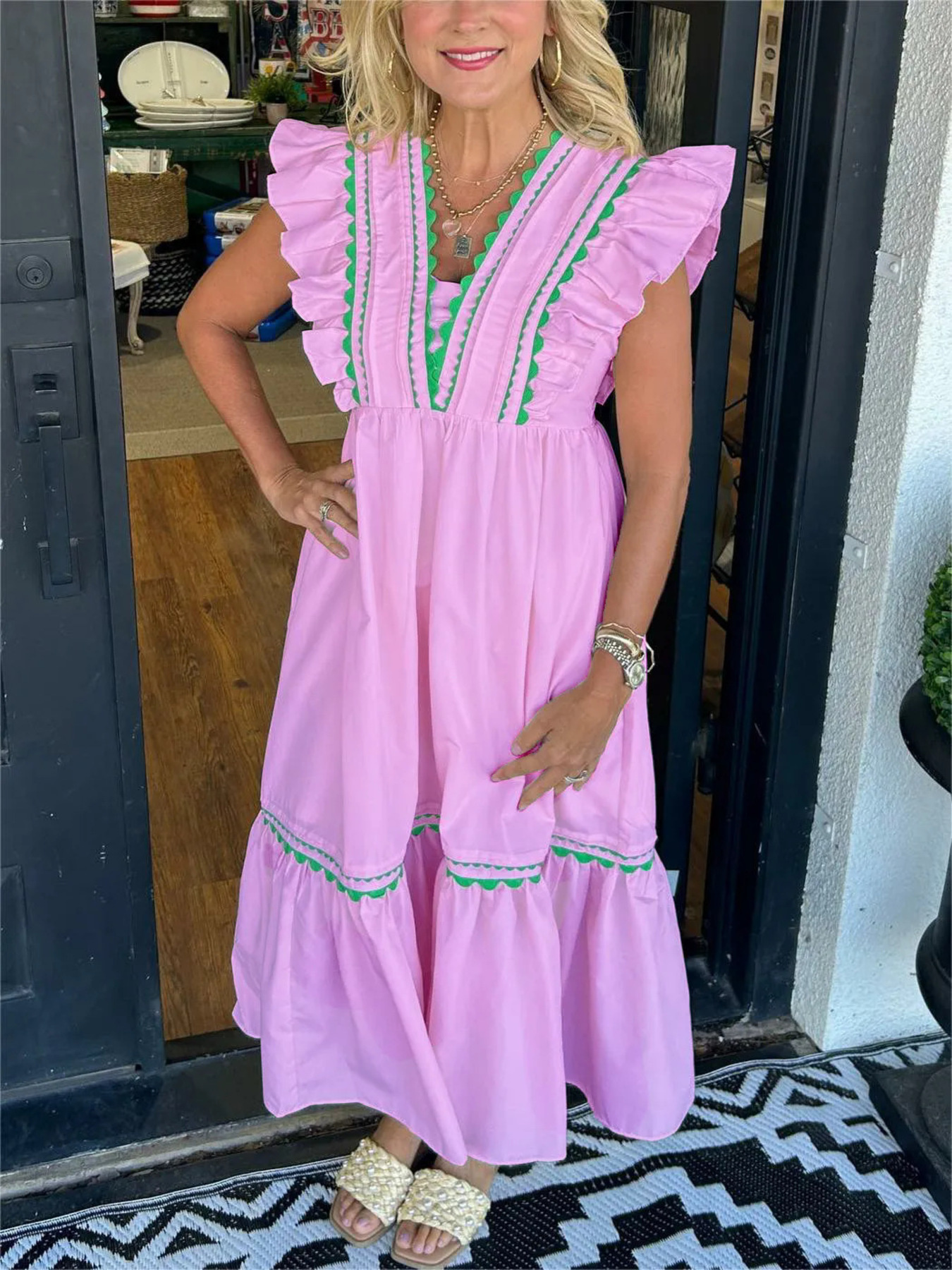 Full Size Contrast Trim Ruffled Cap Sleeve Dress Plus Size