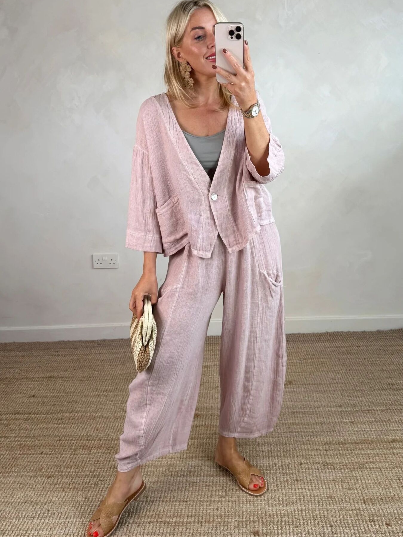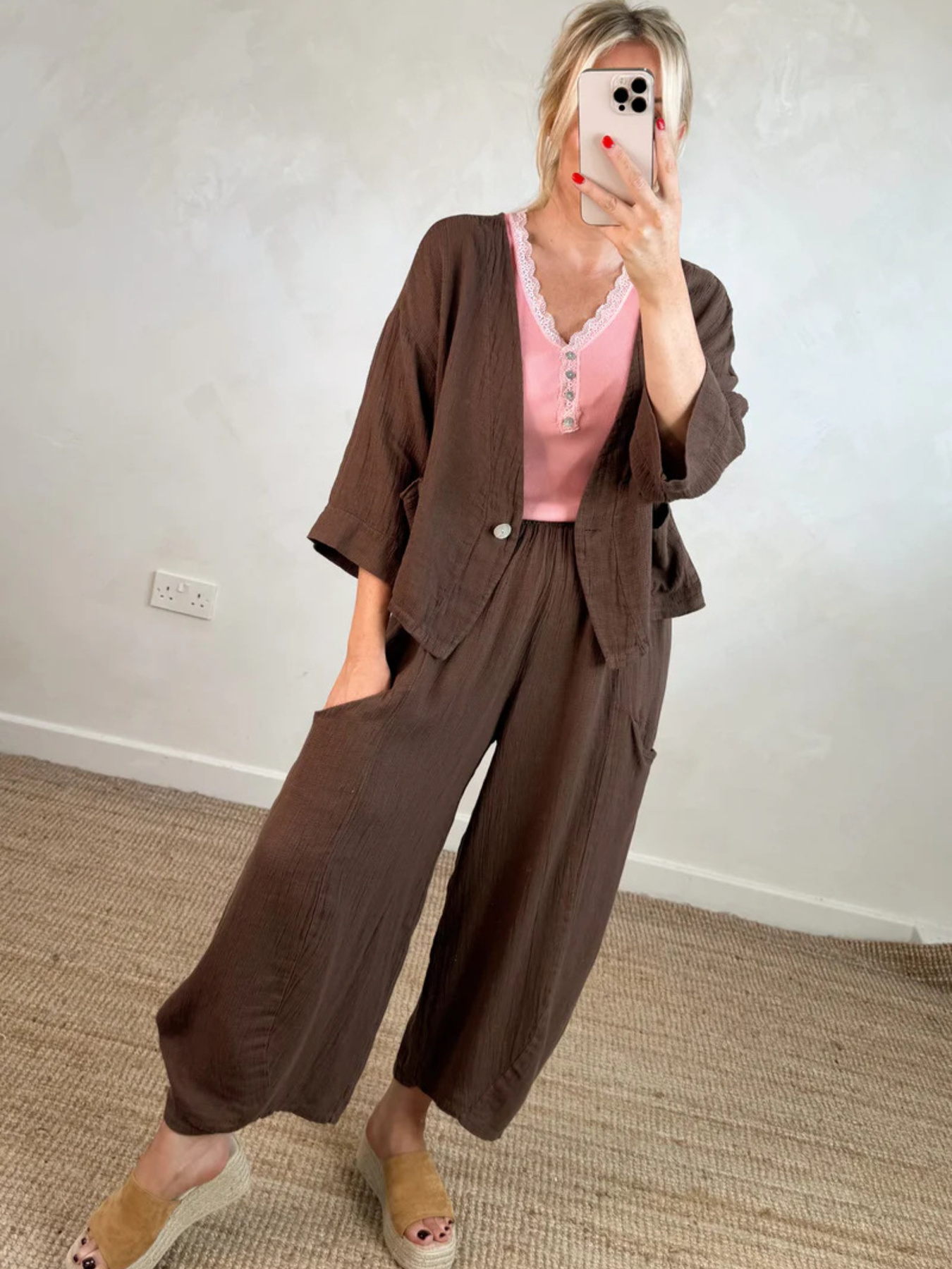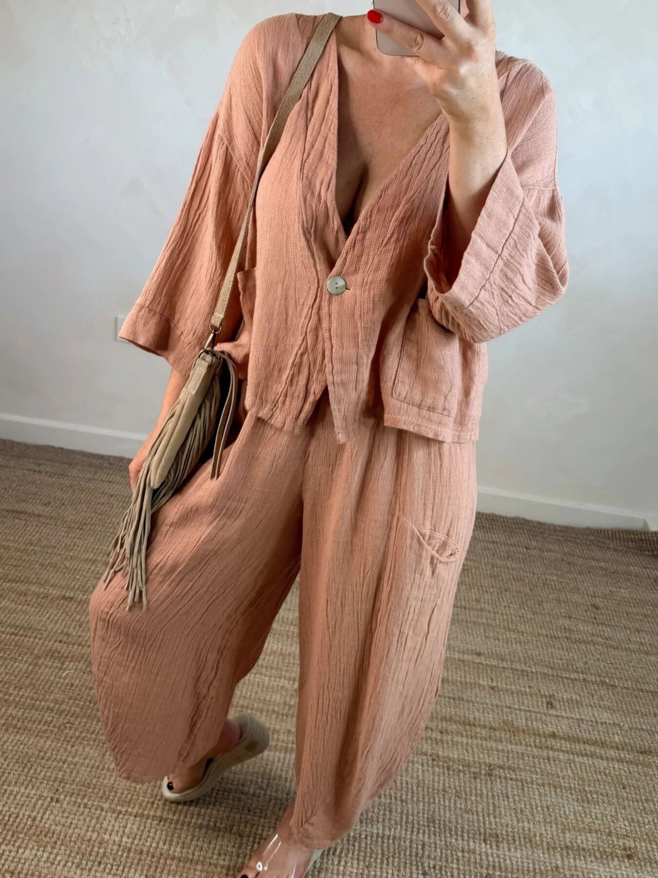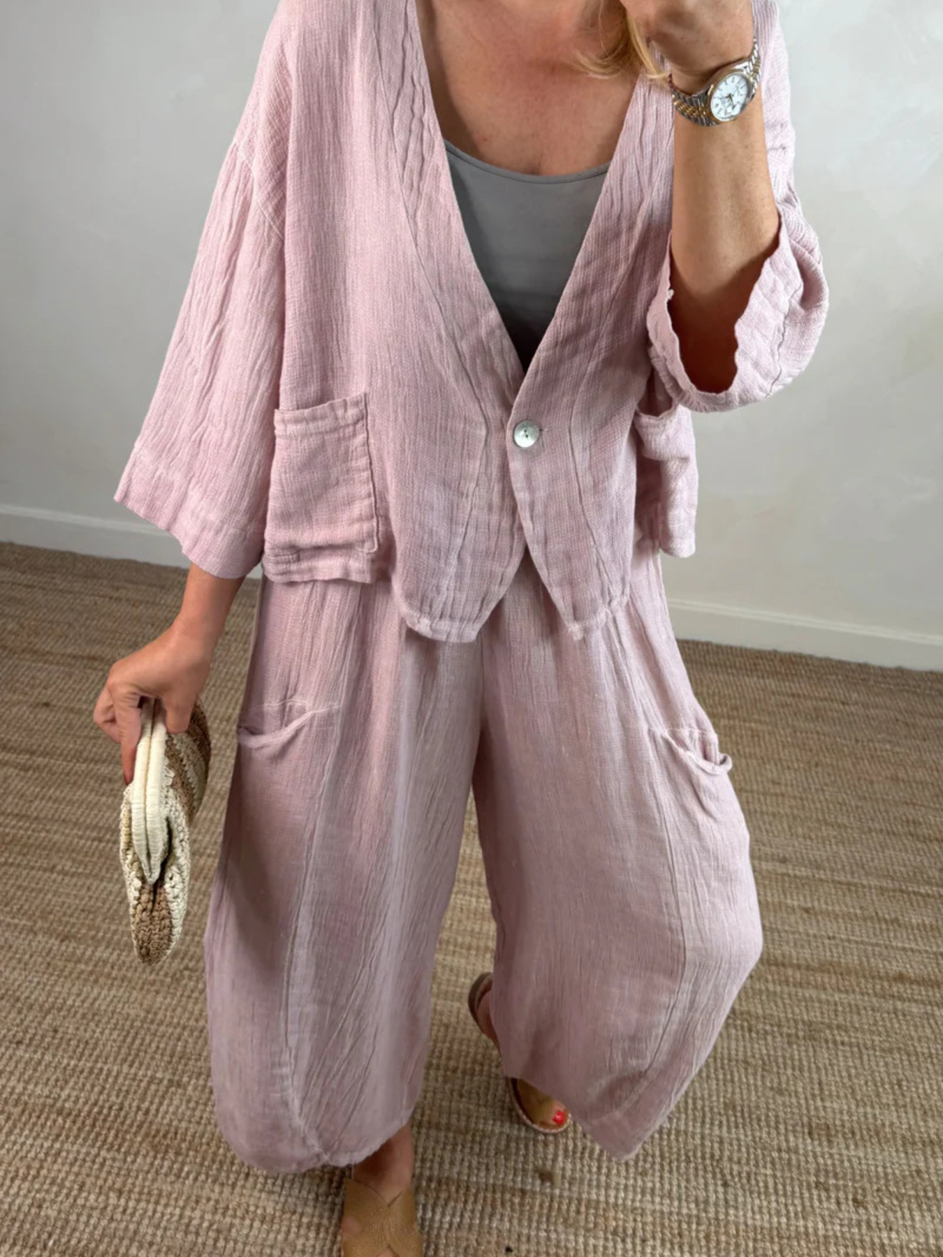 Full Size One Button Casual Top And Pants Set Plus Size