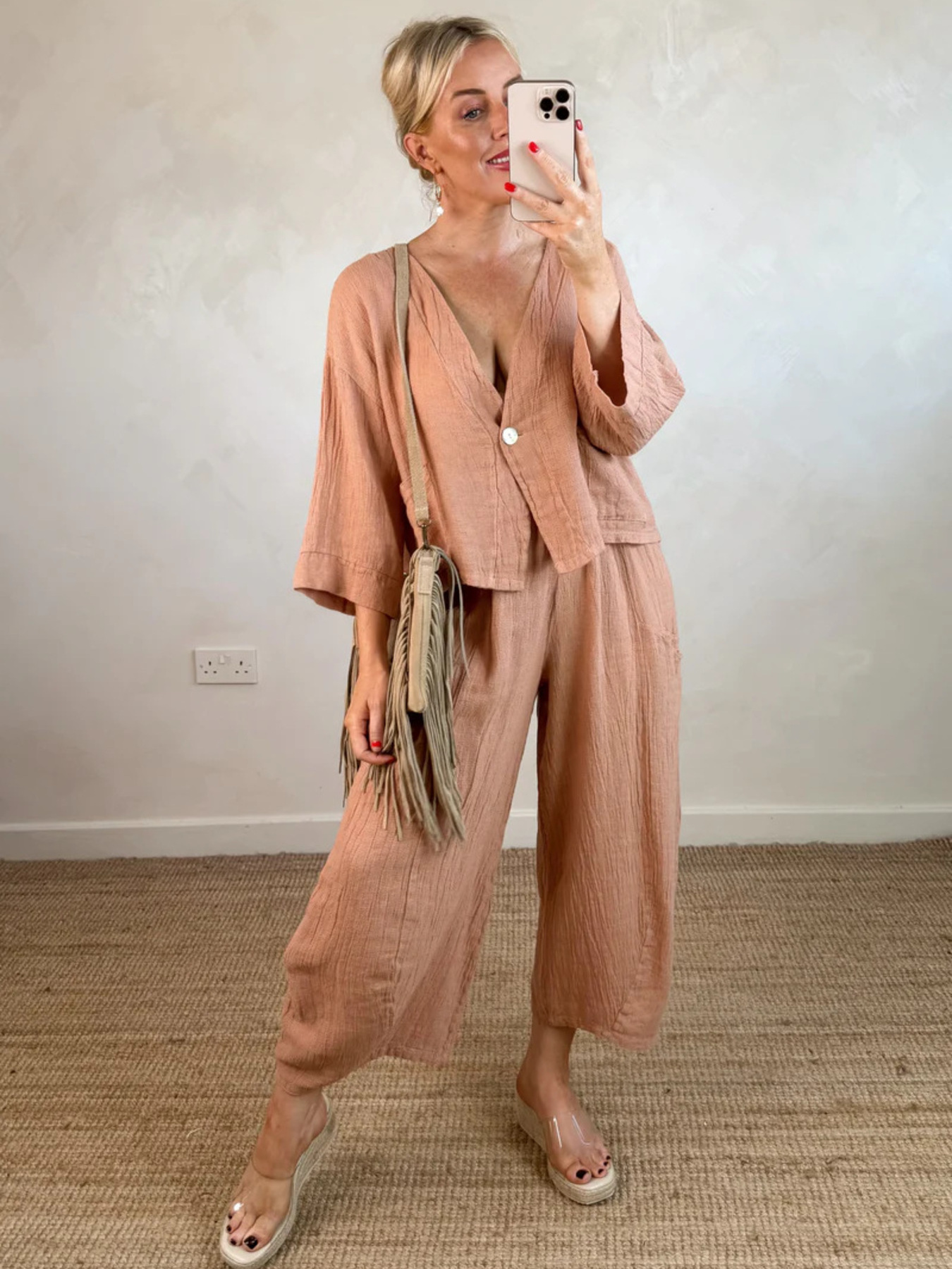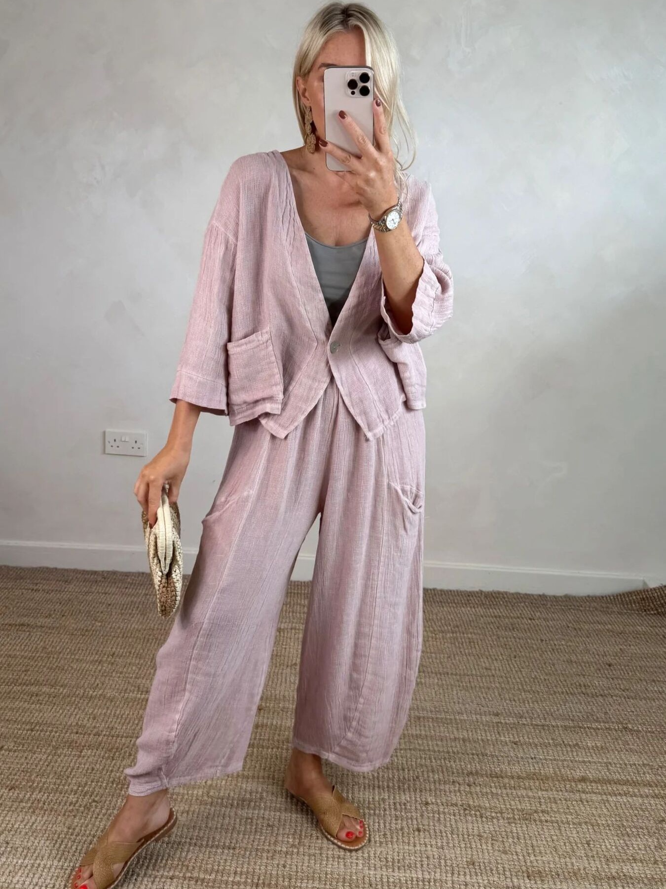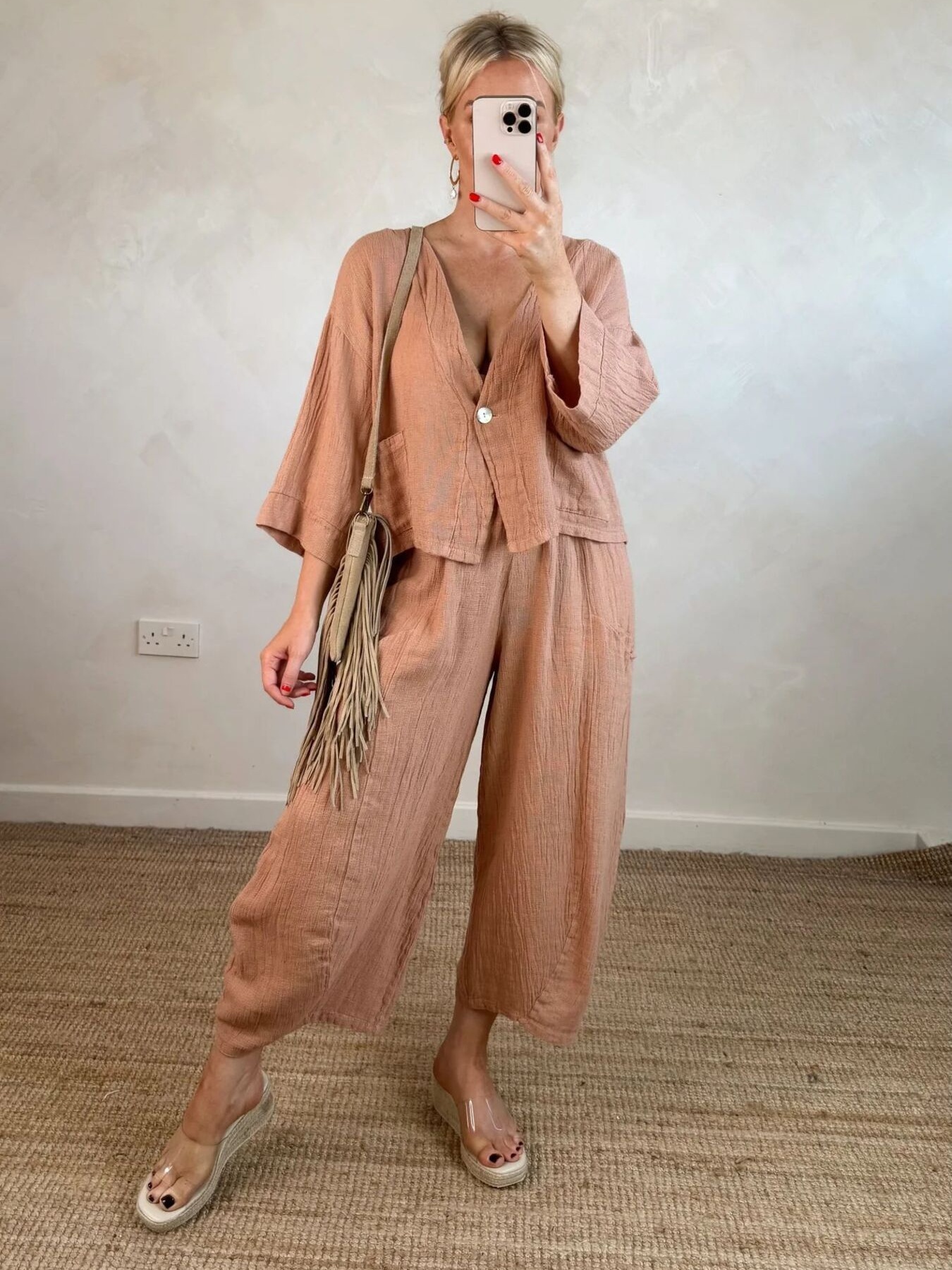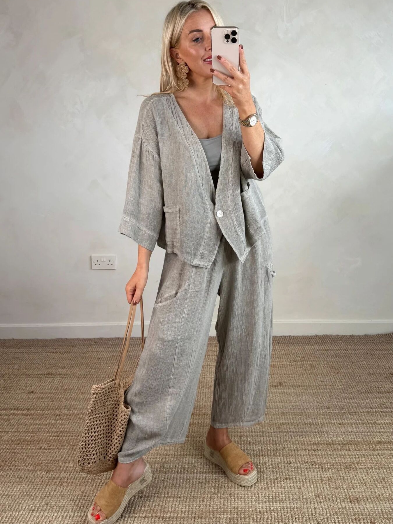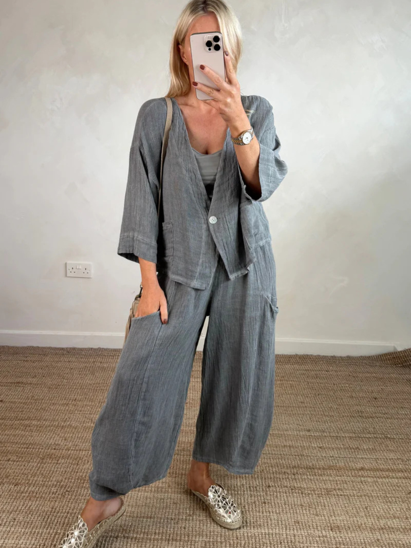 Full Size One Button Casual Top And Pants Set Plus Size