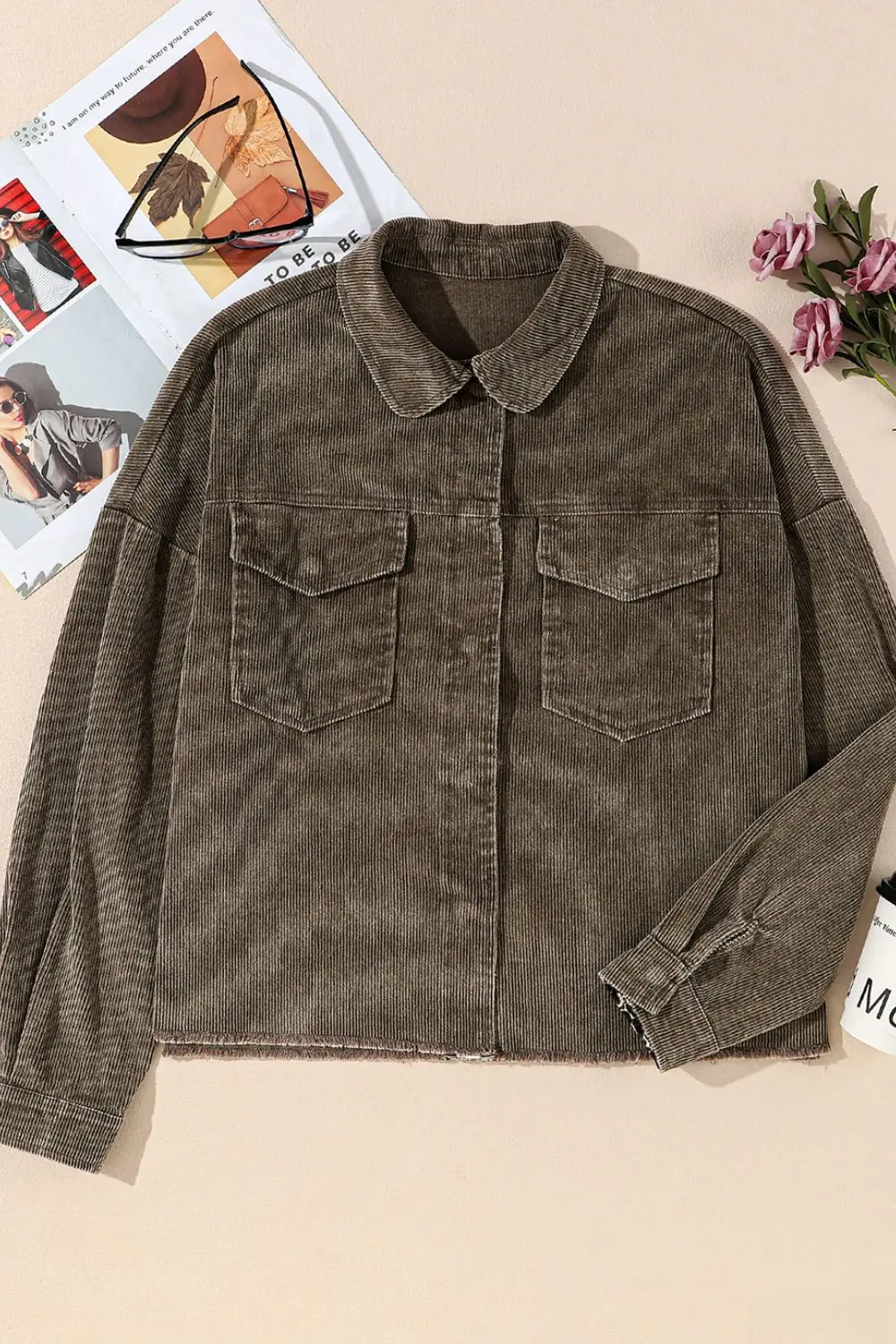 Snap Down Pocketed Collared Neck Jacket