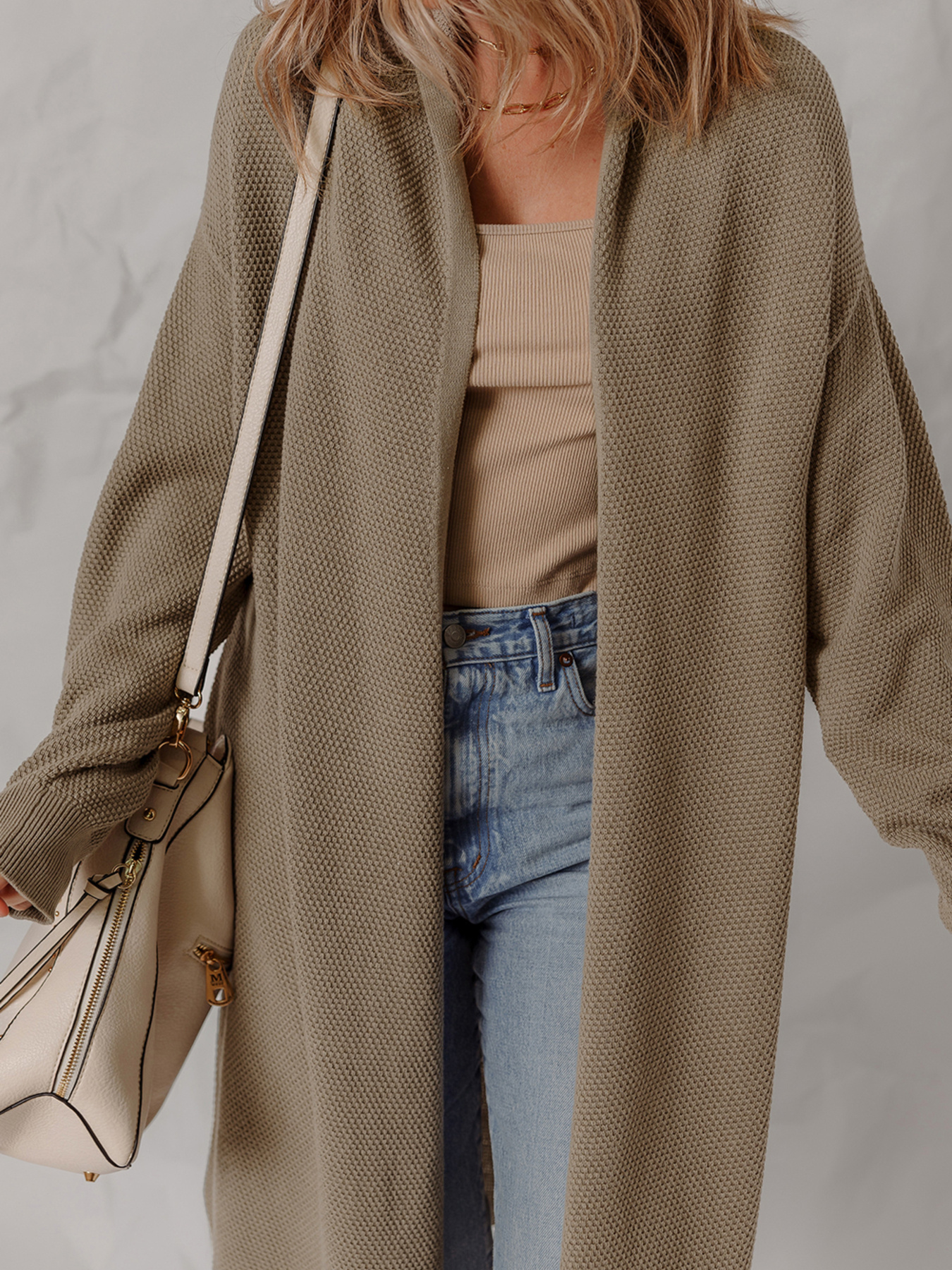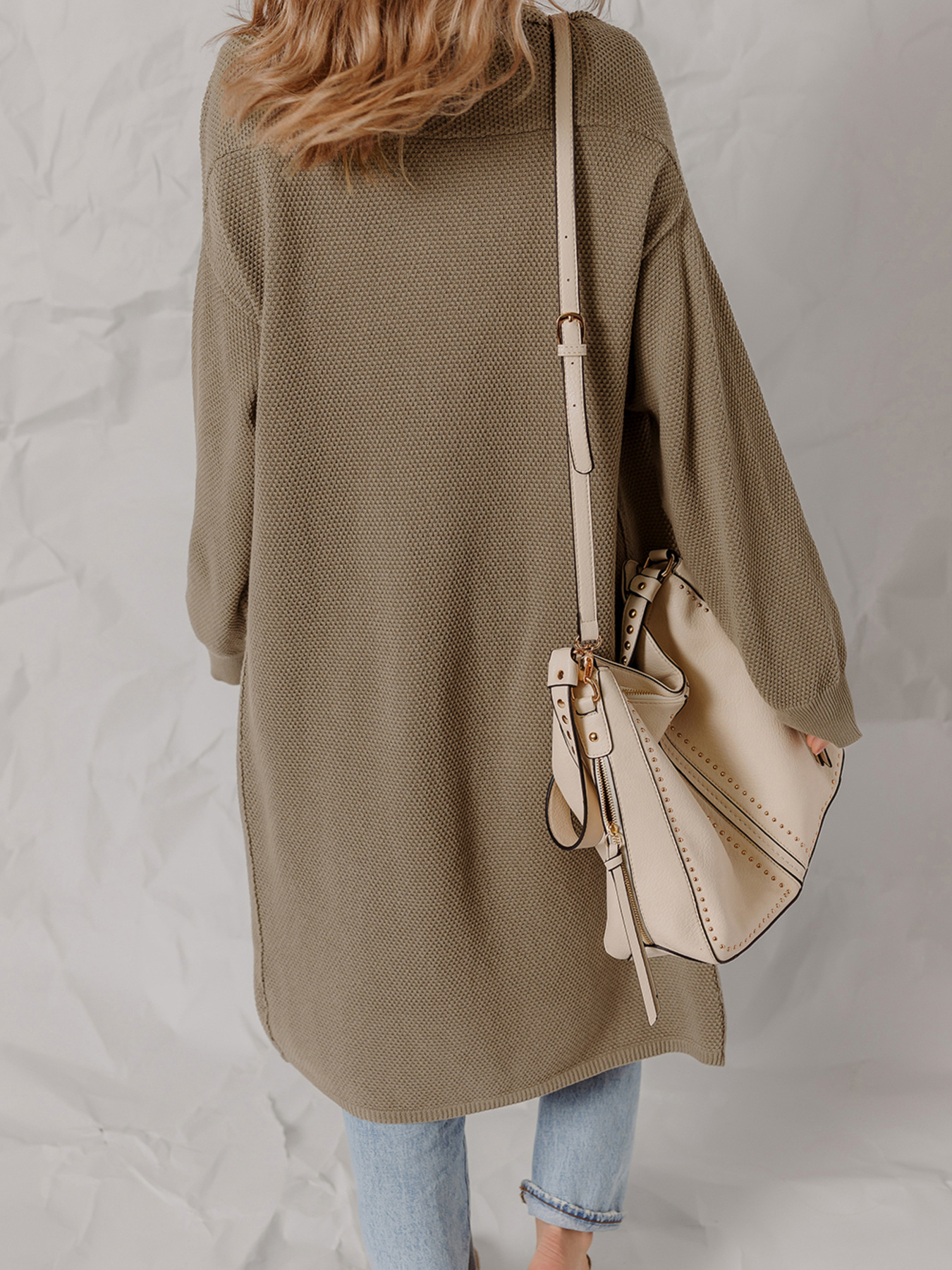 Solid Color Textured Knit Open Front Oversize Cardigan