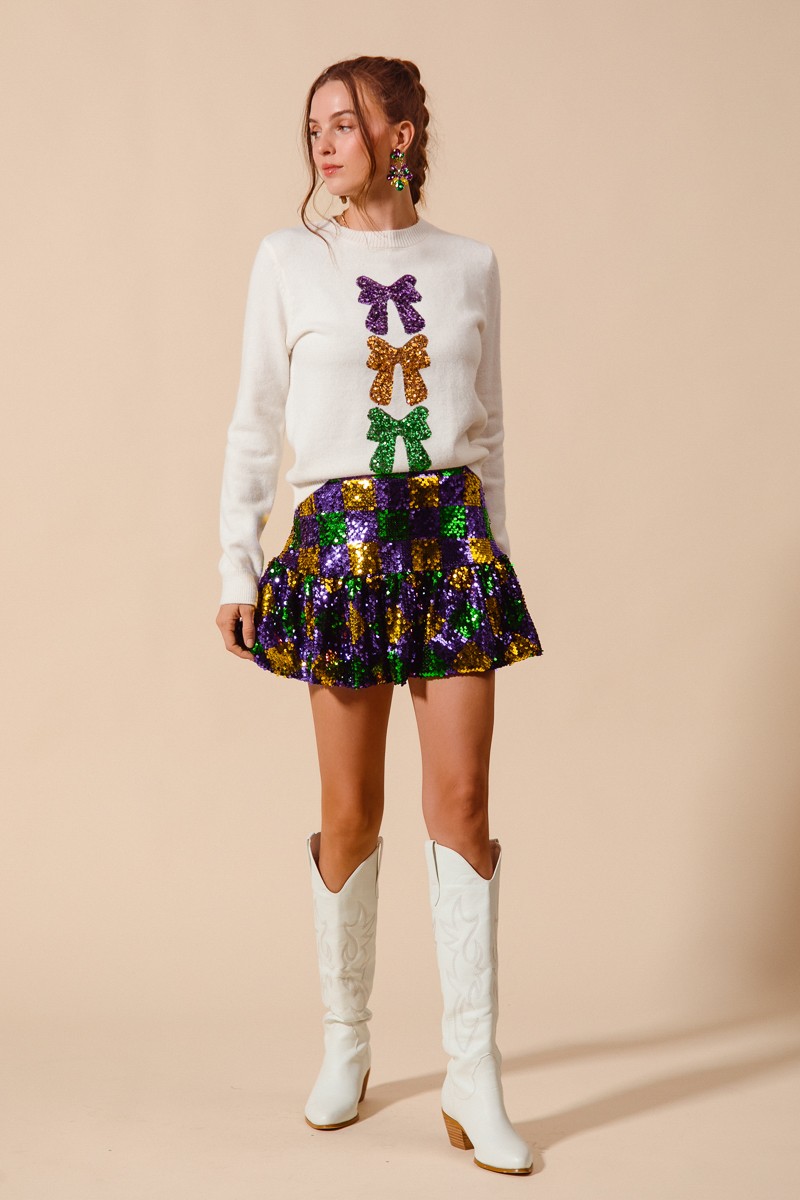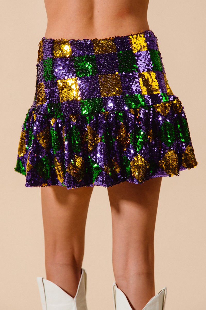 So Me Mardi Gras Checker Sequins Mini Skirt